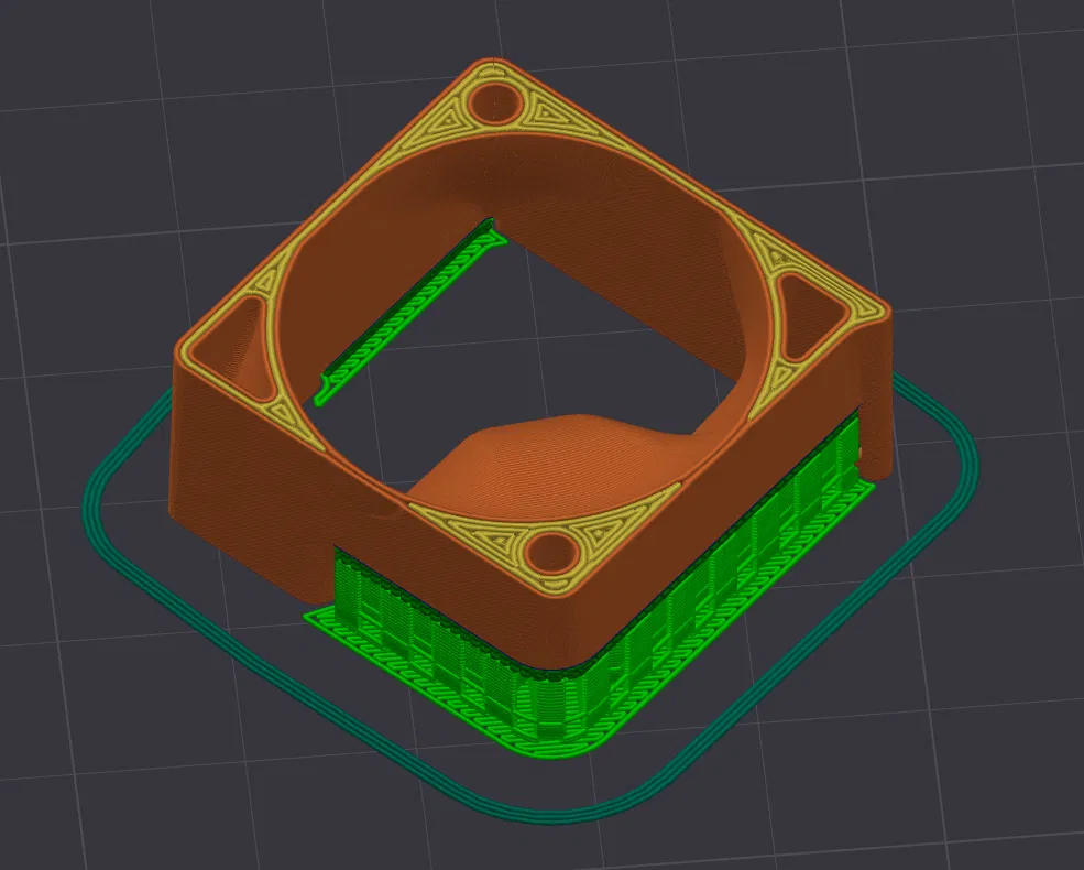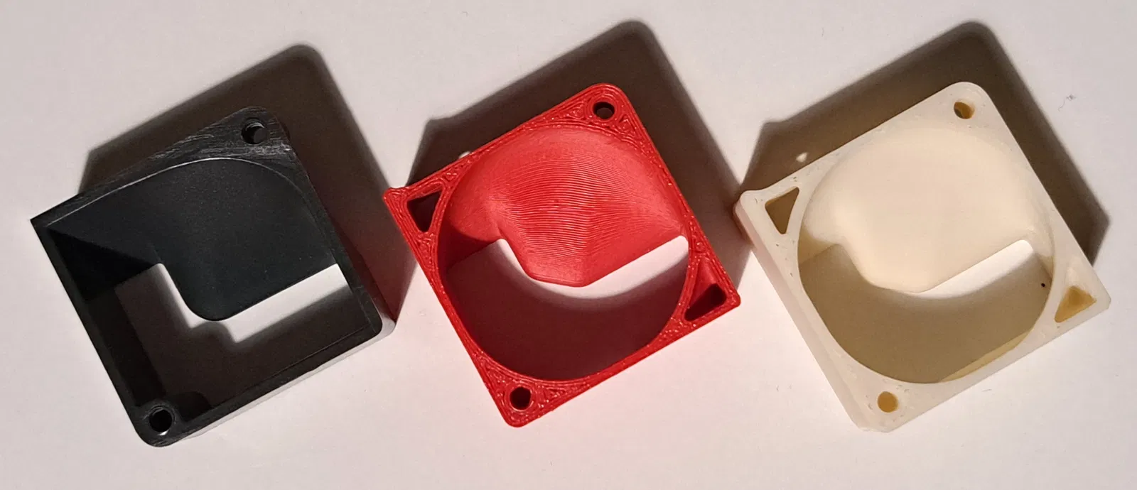 Ống dẫn gió (fan duct/shroud) cho hotend Elegoo Centauri Carbon, tối ưu luồng gió để làm mát tốt hơn và giảm tiếng ồn. Kèm gợi ý thông số in Prusament ASA, support và brim để ra form đẹp.