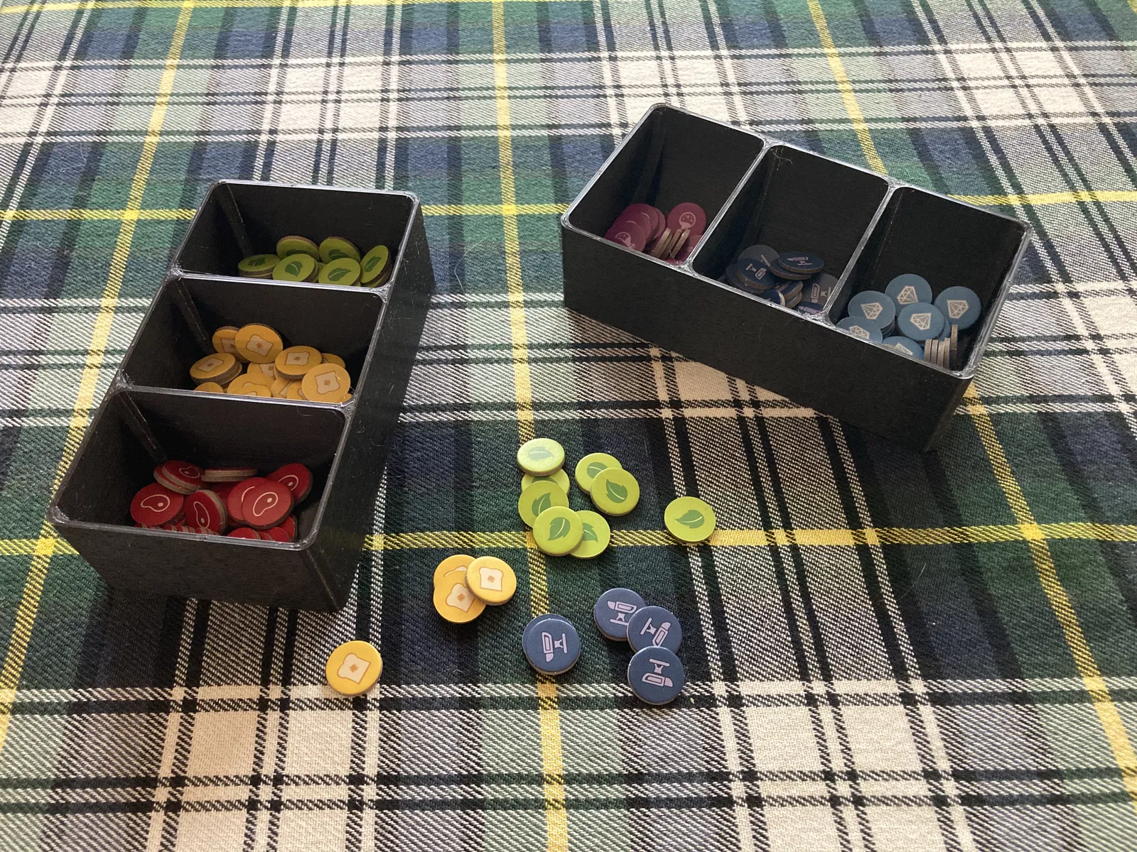 Bộ insert này giúp bạn sắp xếp game gọn gàng trong hộp, đồng thời cũng hỗ trợ thao tác khi chơi. Mình không thiết kế theo kiểu có tính tới bài đã bọc sleeve, nên sẽ không chứa được card sleeves. Mình cũng thiết kế dựa trên base game, nên không dám hứa là sẽ vừa các món của bản deluxe (chắc chắn là không có chỗ cho mấy player minis nâng cấp). Nhưng nếu bạn chỉ có metal coins hoặc wooden tokens, thì có kèm một hộp misc để cất các miếng cardboard gốc.