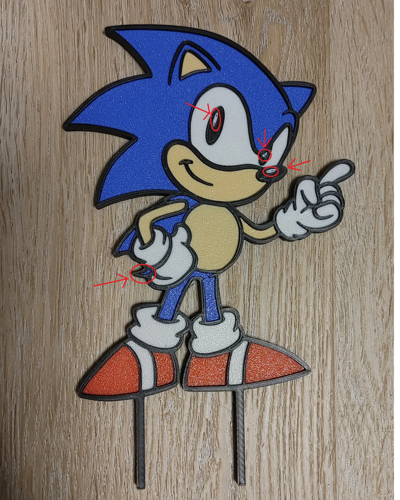 Con trai mình mê Sonic the Hedgehog lắm nên muốn làm sinh nhật theo chủ đề Sonic. Mình lục tung mấy trang hay tìm thì thấy ItsBryy3D có mẫu Sonic multipart đẹp nhất mình tìm được. Mình scale xuống còn khoảng 6 inch chiều cao và thêm phần chân ~60mm để đặt lên bánh cho vững… và kết quả ra quá đã!
