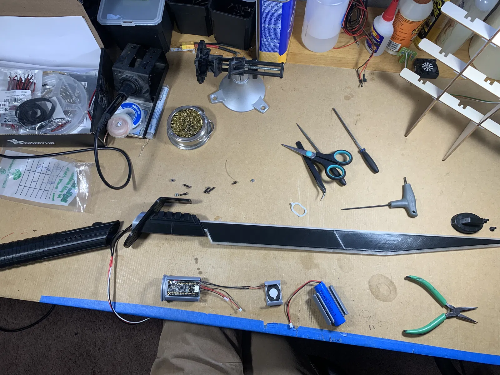 Bạn sẽ cần canh vị trí trên print bed cho khéo: các phần của lưỡi chỉ vừa khi đặt chéo theo đường góc này sang góc kia, nhưng mình đảm bảo là vẫn vừa. Mình đã kèm file 3mf cho những phần cần đặt chéo. Tất cả đều in được không cần supports và chạy ổn. Phần duy nhất có thể cần chỉnh là Pommel: nó hơi lỏng, nhưng mình chỉ chèn thêm bằng băng keo (tape) thay vì in lại.