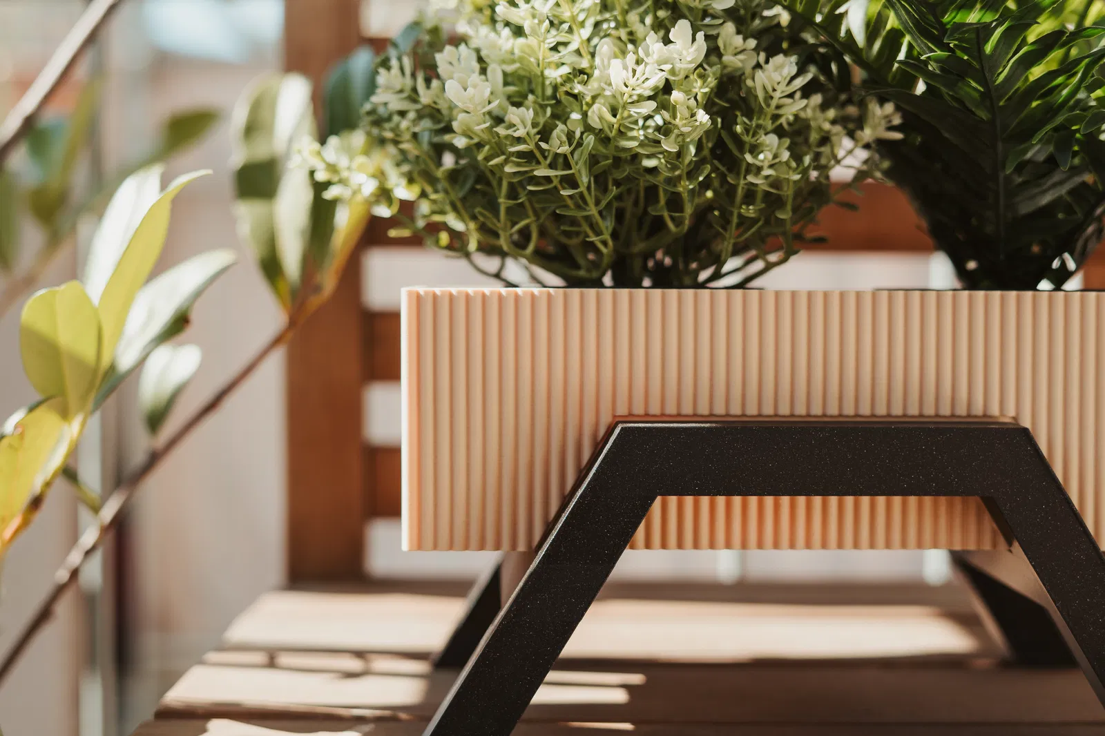 Chậu cây Legged Plant Pot với thiết kế hiện đại: chậu đặt trên đế có chân tạo vẻ nhẹ và sang. Phần chậu tháo rời dễ dàng, kèm vách ngăn tùy chọn. Lưu ý in supports cho chân và overhang.