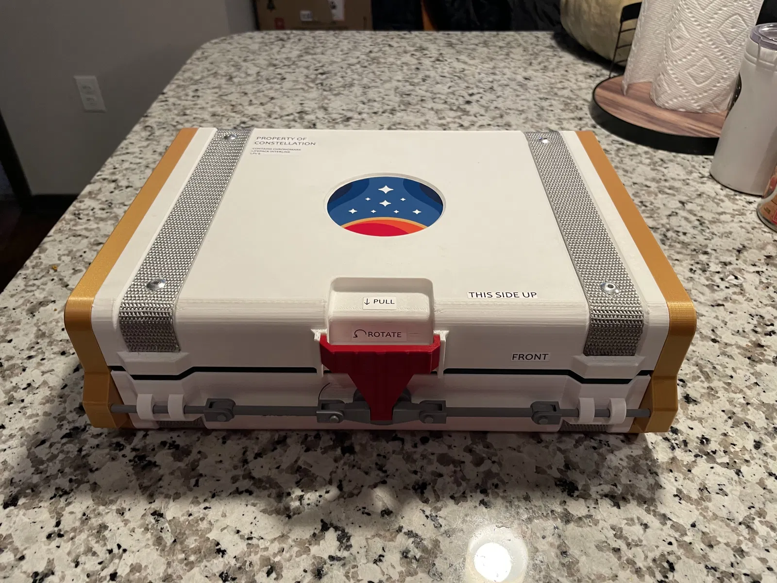Bản tái tạo vỏ đồng hồ Starfield Chronograph từ game Starfield của Bethesda, dựng theo tỉ lệ và tối ưu chi tiết theo ảnh hiện có. Cần thêm linh kiện không in (dây, rivets) và dùng filament 1.75 làm bản lề để hoàn thiện.