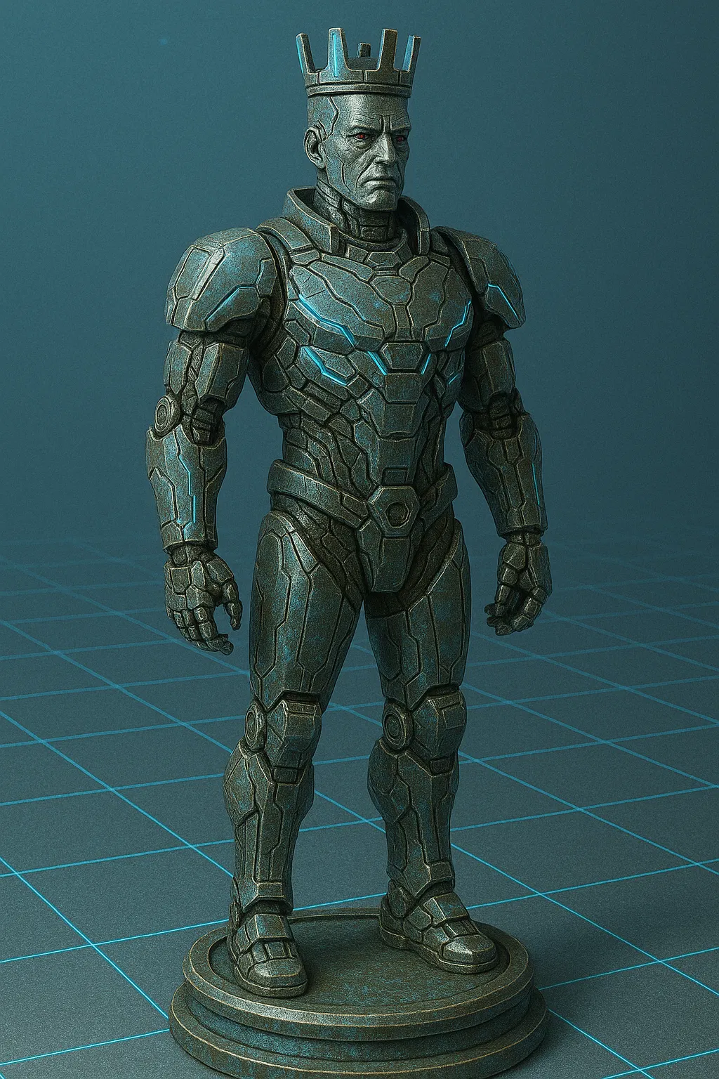Imperator KX-01 is the center of all cybernetic computing structures. His body is a fortress, his mind a meta command center. He moves slowly, because every decision has planetary implications. In KRONOS 2185, the king is not simply the target – he is the server.