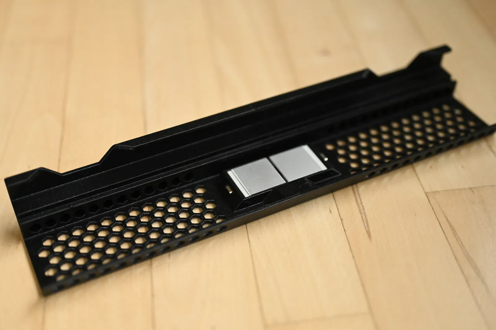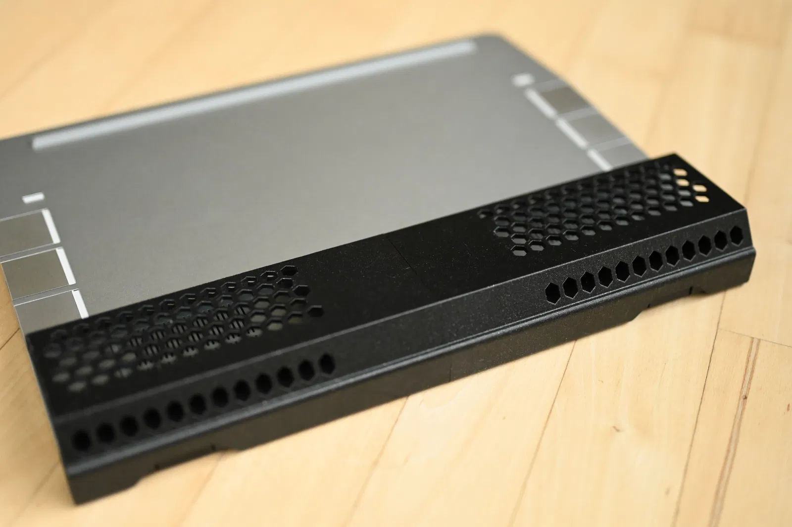 Spacer dài cho Framework 16 giúp thoáng gió khi để trên chăn hoặc đặt lên đùi, tránh bít khe hút gió và nóng chân. Thiết kế gồm 2 nửa khớp chuẩn, mỗi nửa chứa 1 expansion card; tùy chọn nam châm 6x3mm. Không dùng với dGPU.