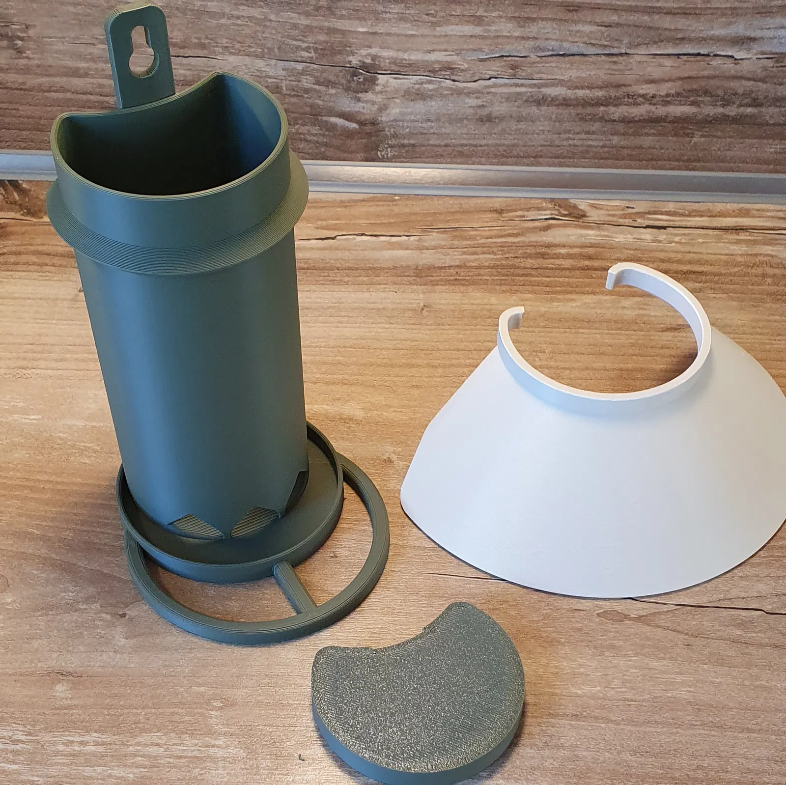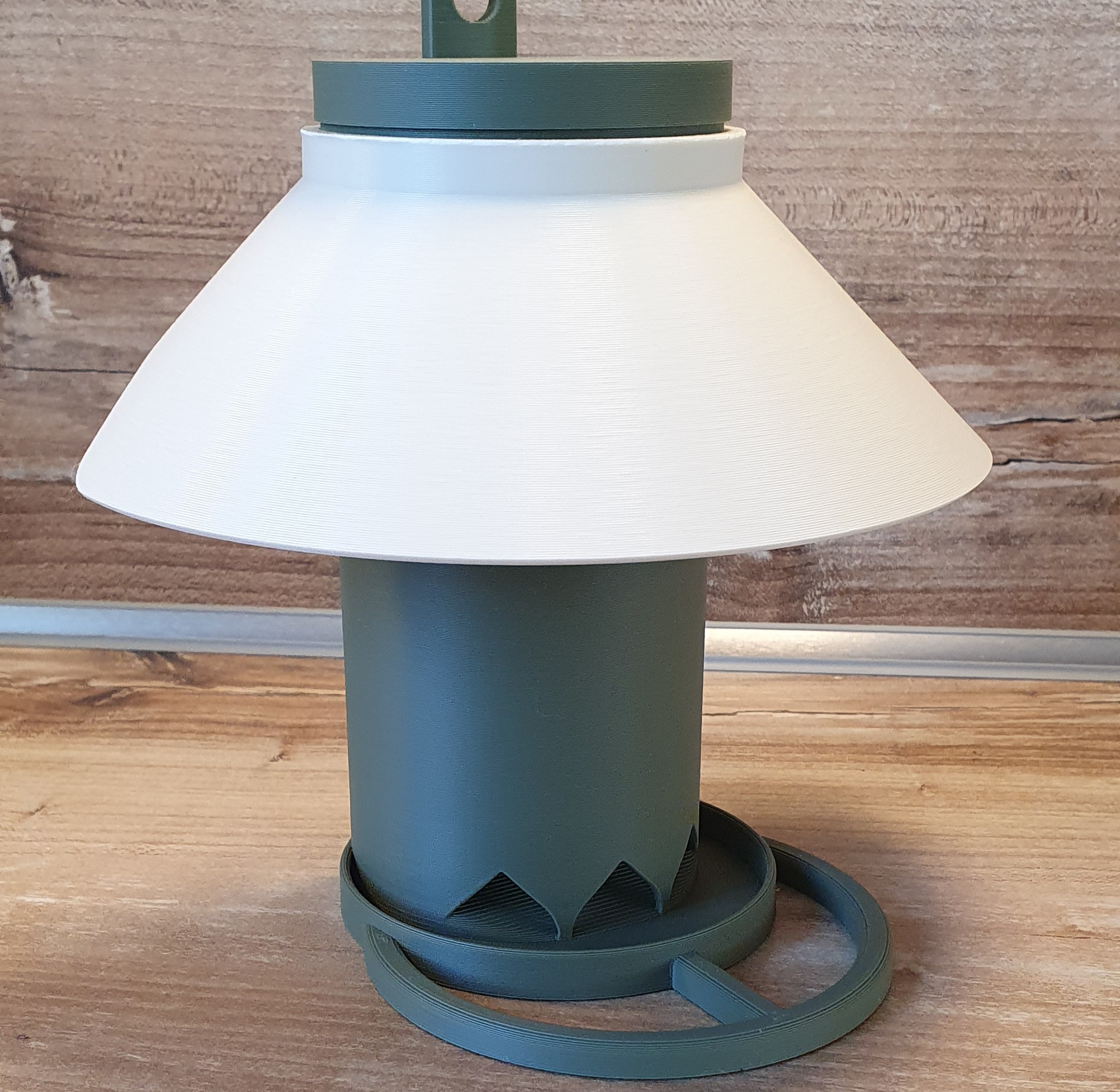 tôi đã thiết kế một Vogelfutterhaus. Nó có thể treo trên một cây cọc hoặc gắn lên một bức tường phẳng.