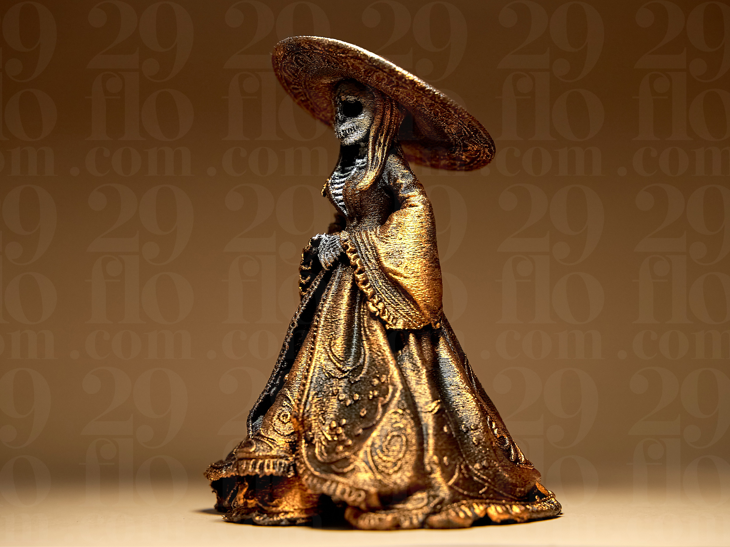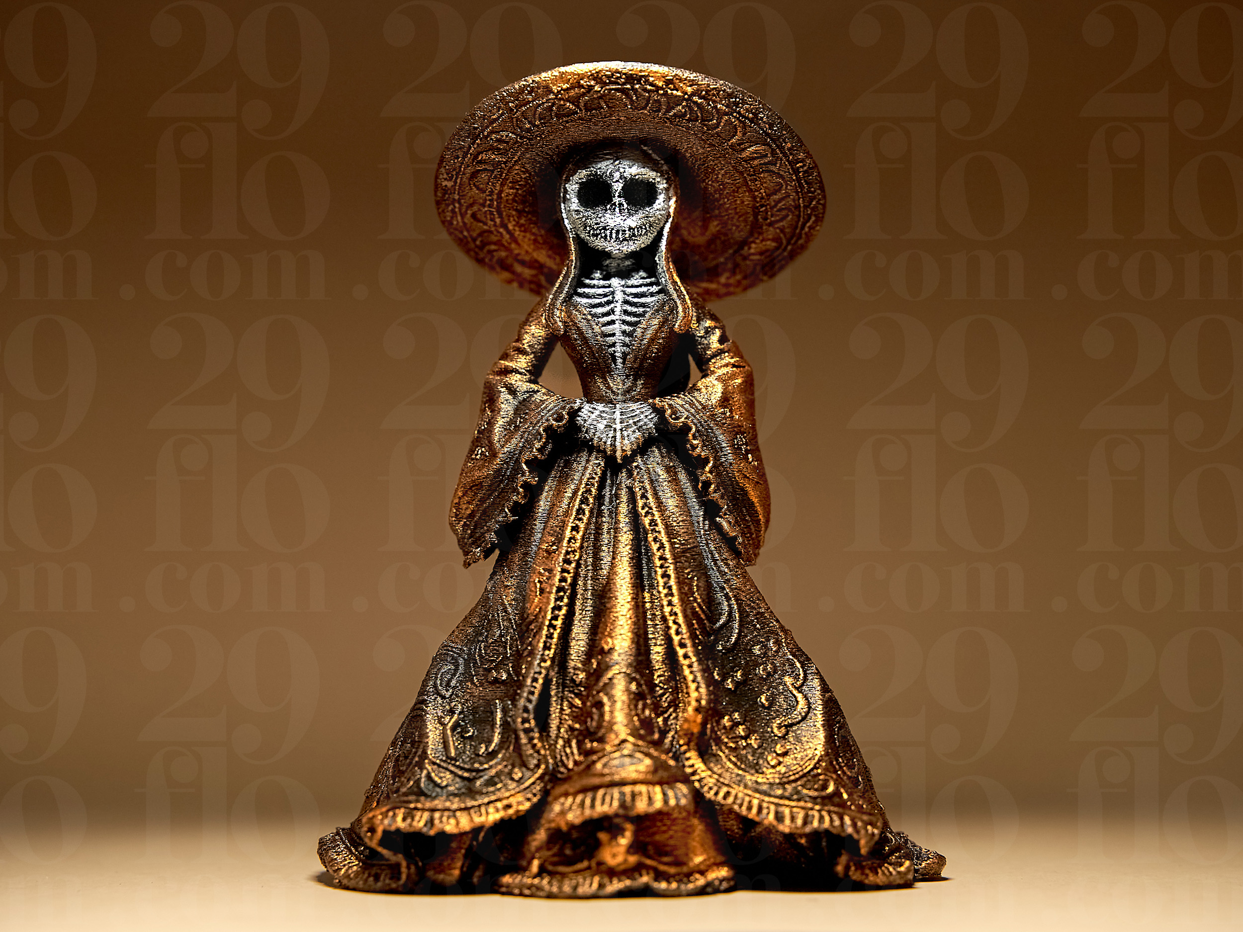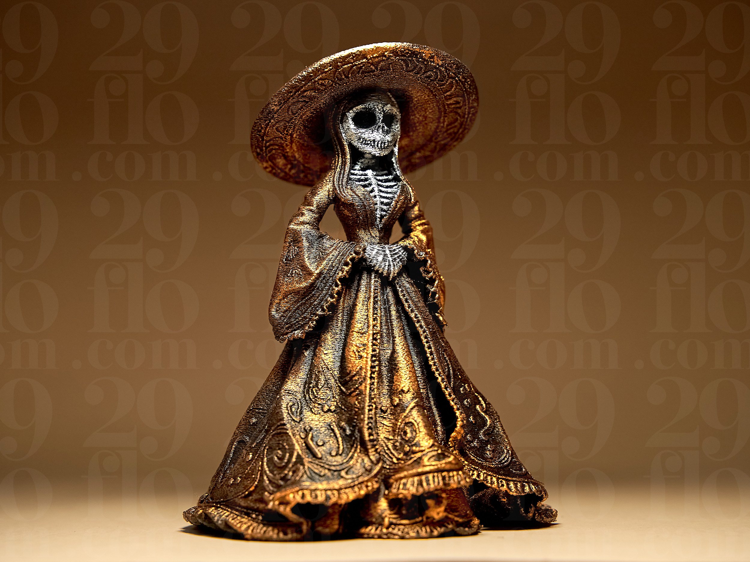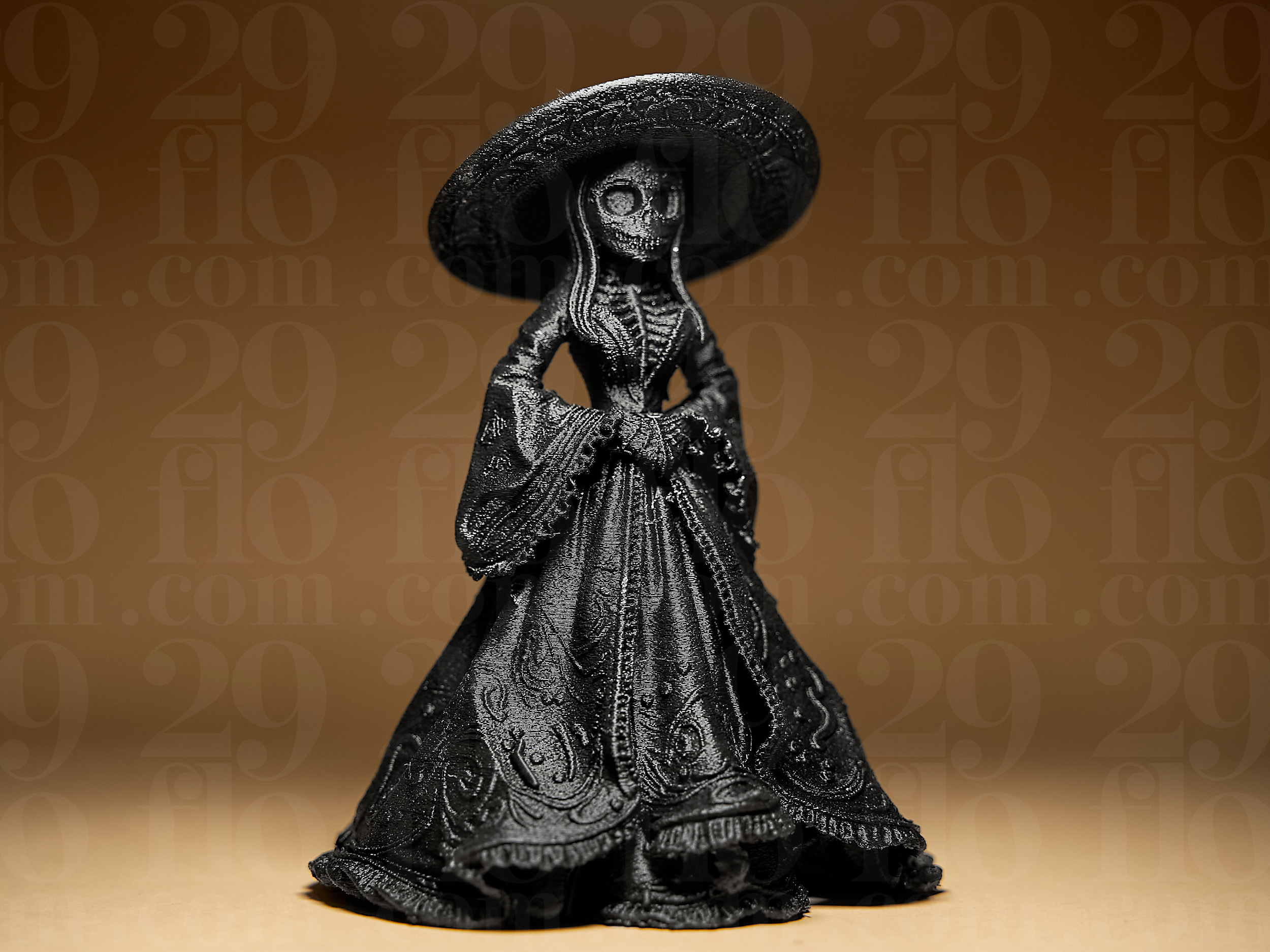 Dia dos Muertos Figurine – mẫu tượng trang trí phong cách lễ hội người chết Mexico. Gợi ý thiết lập in figurine cỡ 15cm: nozzle 0.4mm, layer 0.2mm, infill 5%, supports Tree (auto), có thể dùng hiệu ứng fuzzy skin.