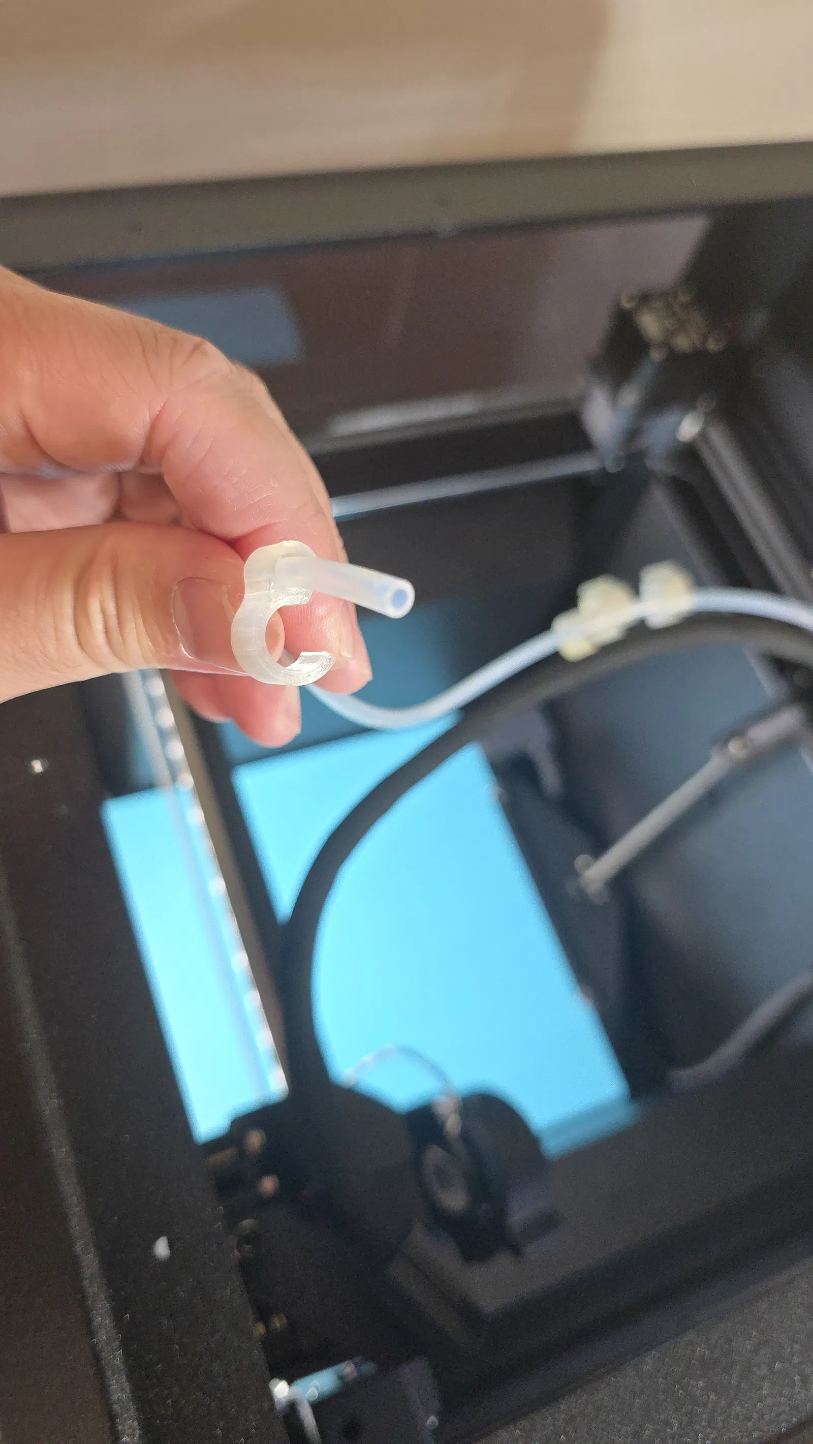 V2: tháo ống PTFE ra khỏi extruder rồi trượt các miếng này vào. Khi lắp xong, chúng cho phép ống PTFE có thể dịch chuyển một chút trong lúc sử dụng.