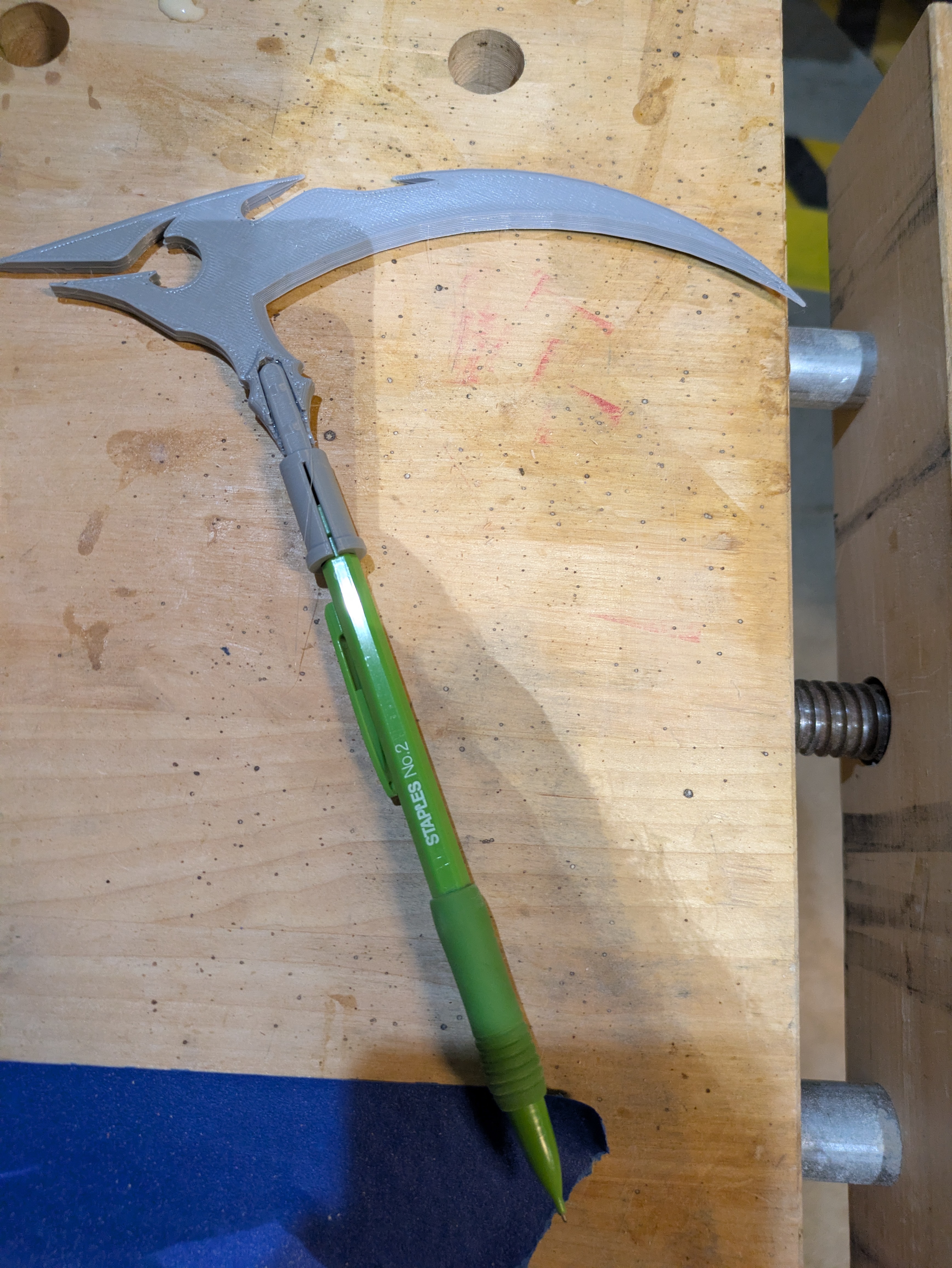Phần đầu lưỡi hái fantasy được làm cầu kỳ hơn, thiết kế để gắn vừa với pencil topper từ mẫu của soozafone. Phù hợp cho mô hình trang trí kiểu polearm từ bút chì.