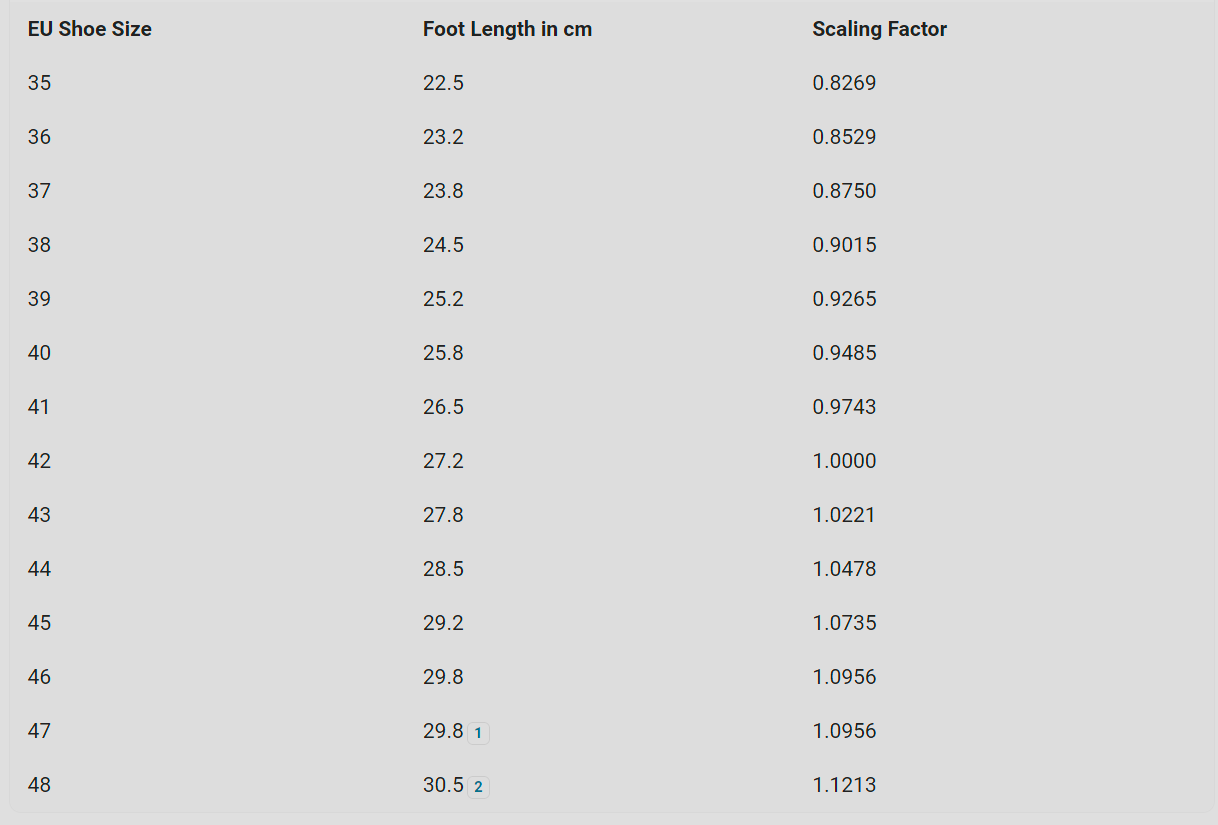 - Mẫu này theo size giày EU 42, nhưng bạn có thể scale theo size của bạn: