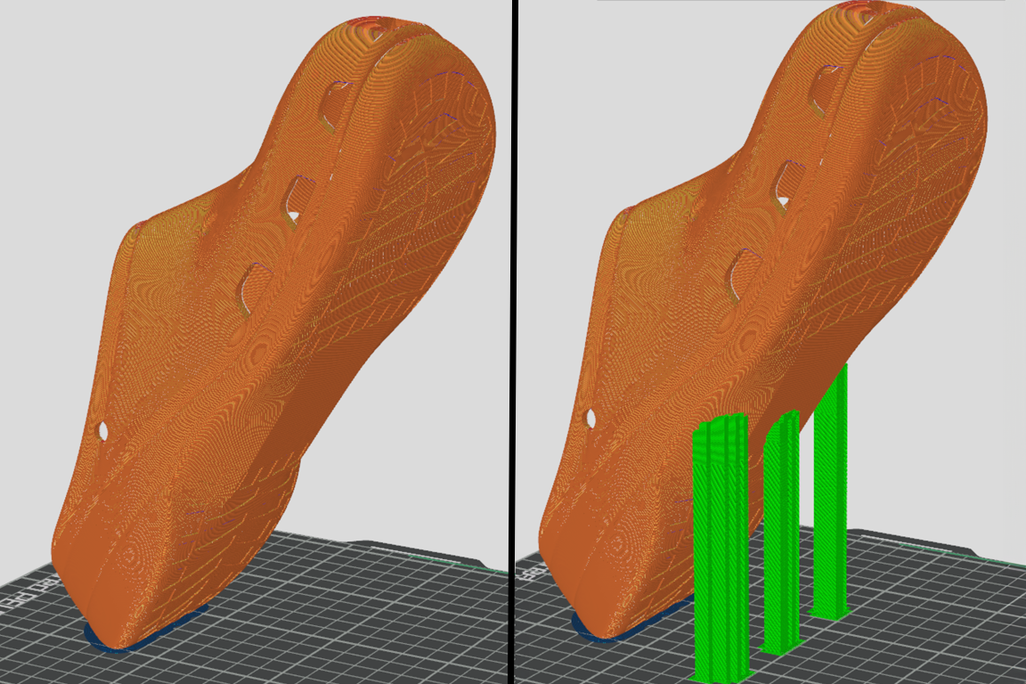 - Dùng mặt bàn textured PEI và in dựng đứng không cần support