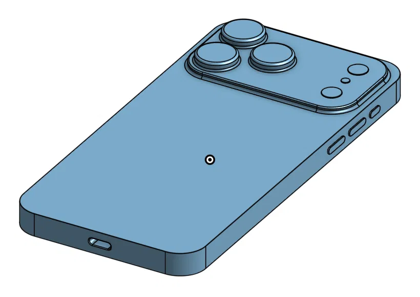 Dựa theo các leak, mình ước lượng “bằng mắt” một số chi tiết mà kích thước chính xác vẫn chưa được công bố. Tuy vậy, mình có dùng iPhone 16 Pro để đo kích thước cụm camera và kích thước nút bấm. Để dựng 3D mẫu này, mình dùng Onshape.