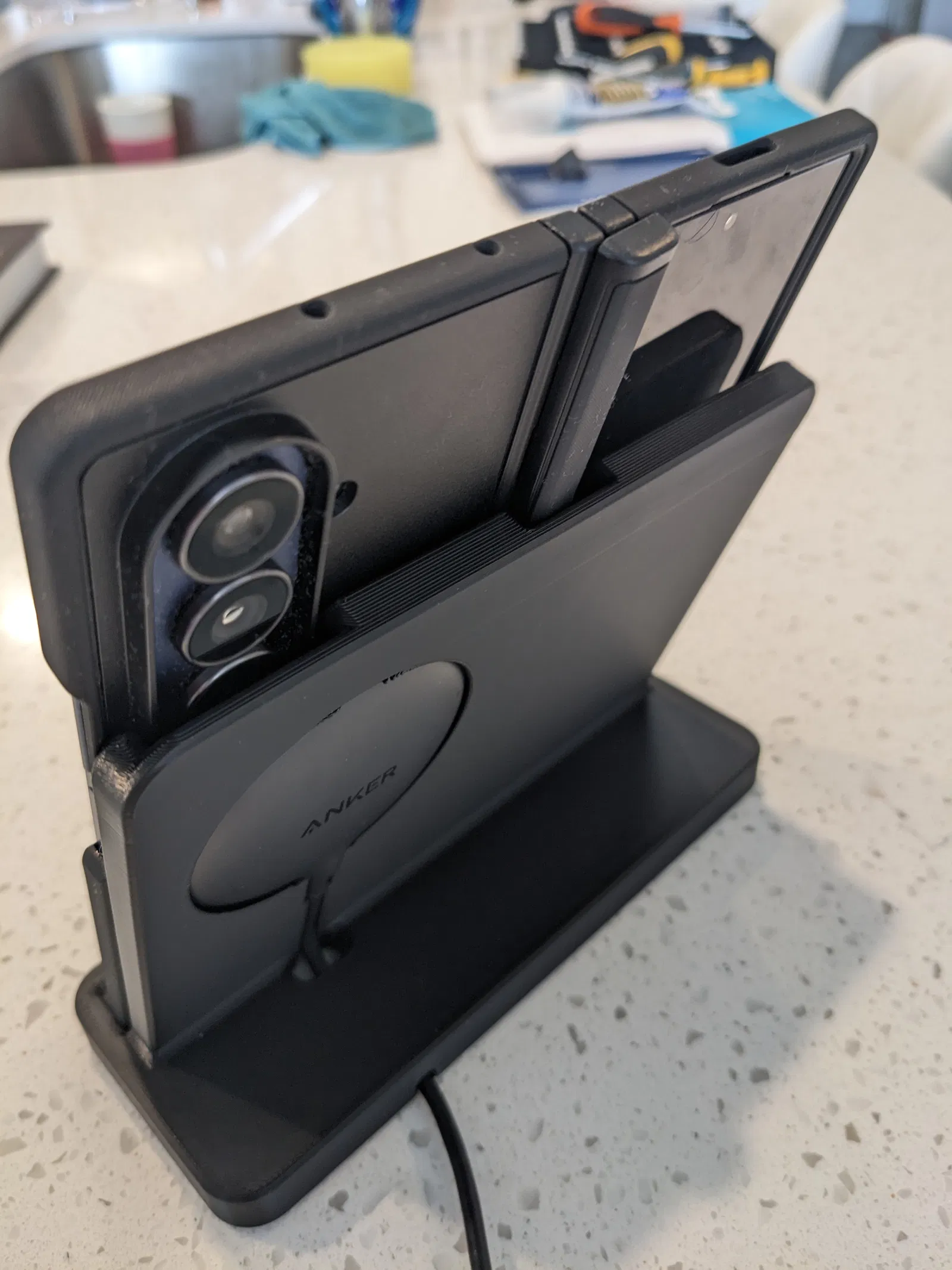 Mình rất thích Samsung Galaxy Z Fold 7, nhưng mình không tìm được một cái dock sạc nào ổn áp cho phép sạc điện thoại khi đang ở trạng thái “mở” (unfolded). Vậy nên mình tự làm luôn!