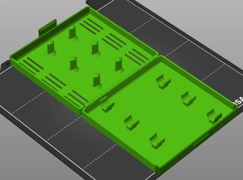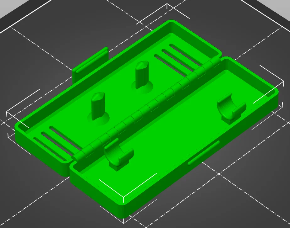 Edit 2022-10-10: Mình đã thêm file có khe hở lớn hơn cho bản lề (các file “-widetol”) và một miếng test (“-test”) để in thử và kiểm tra xem các file thường có chạy được không. Để kiểm tra bản tolerance rộng hơn có hợp với máy in của bạn không, bạn có thể cắt model trong slicer để tự tạo một miếng test tương tự.