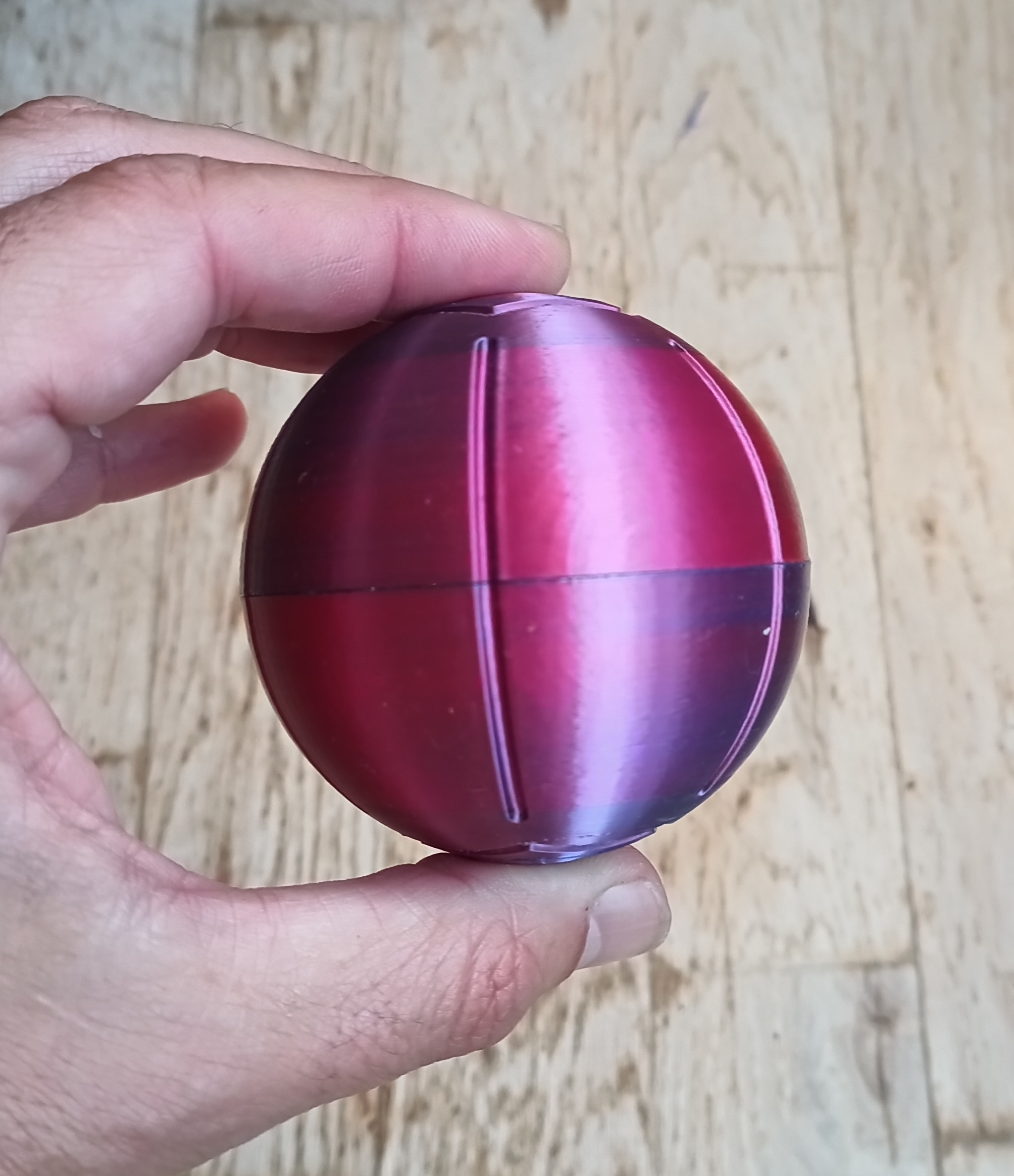 Bạn có thể in nguyên cái một lần luôn, như các file bgcode và 3mf đính kèm đã minh hoạ. Mình in bằng PLA, dùng variable layer height (phần đỉnh quả cầu in lớp mỏng hơn để bề mặt mịn hơn). Mình giữ mặc định infill 15% nhưng bạn có thể tăng lên để cầm đầm tay hơn.