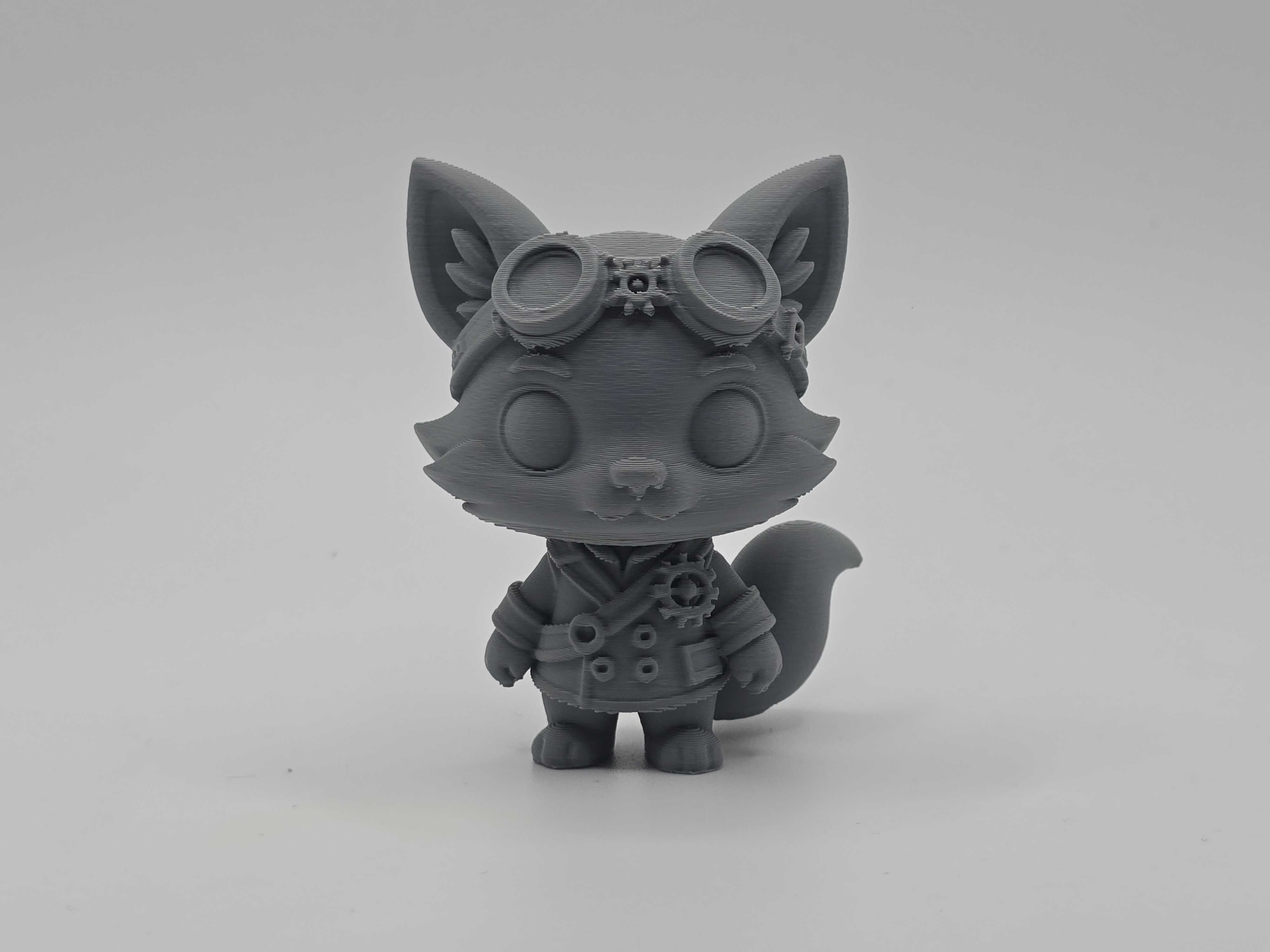 Mẫu Cute Steampunk Fox dạng figurine hoặc keychain, phối nét dễ thương với chi tiết steampunk như goggles và gears. Phù hợp in PLA, gợi ý layer 0.12–0.20mm, infill 15–30%, có thể cần supports phần đầu.