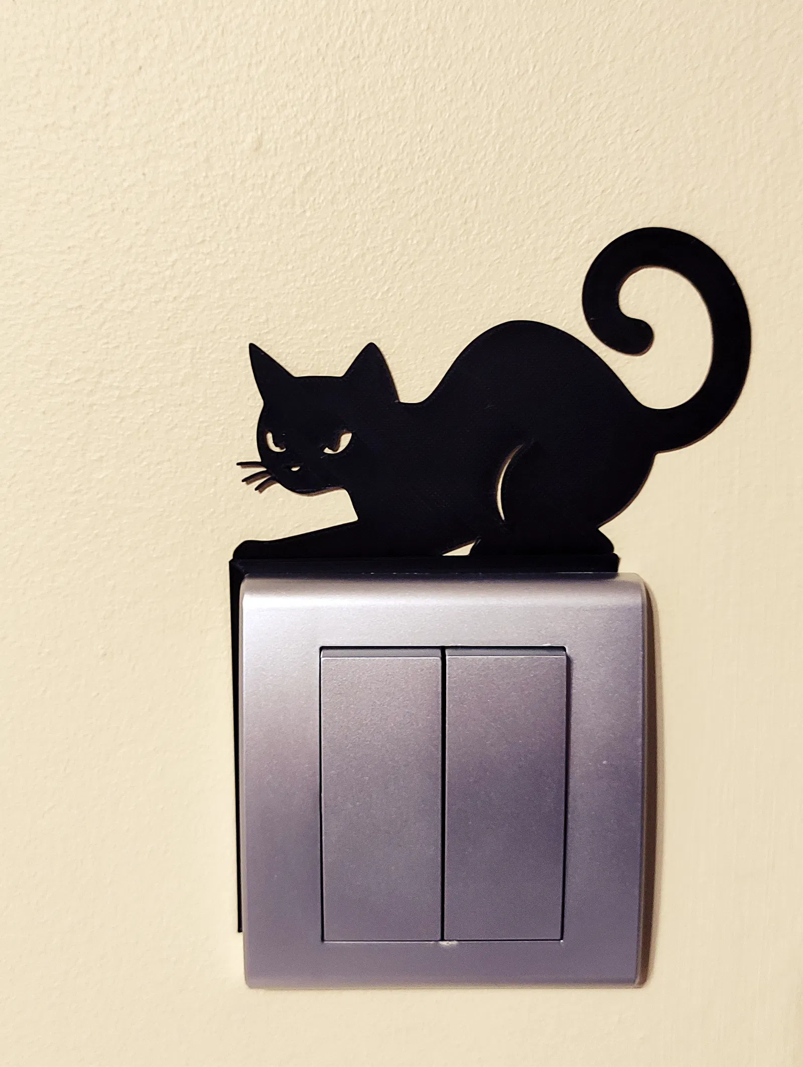 Món trang trí hình mèo duyên dáng, thiết kế để đặt gọn gàng cạnh công tắc đèn hoặc ổ cắm điện. Bé mèo trông như đang với tay tinh nghịch về phía công tắc, tạo cảm giác ấm áp và vui mắt cho mọi không gian. Rất hợp với nội thất hiện đại hoặc kiểu ấm cúng.
