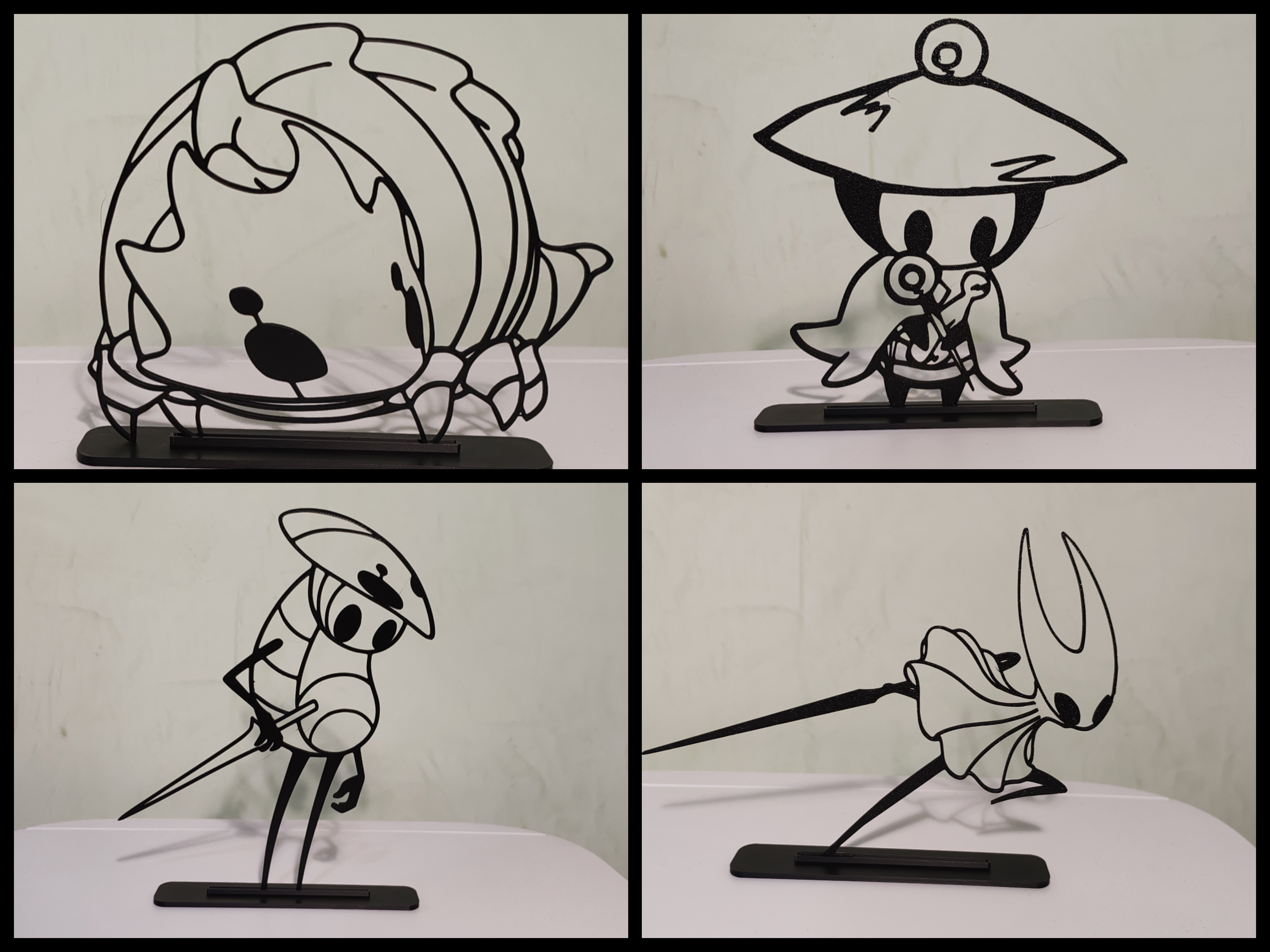 Bộ mẫu nhân vật Hollow Knight: Silksong gồm 4 nhân vật Hornet, Bell Beast, Sherma và Quirrel. Lưu ý in mỗi nhân vật dày 2.35 mm; nếu stand không chắc thì chấm thêm chút keo.