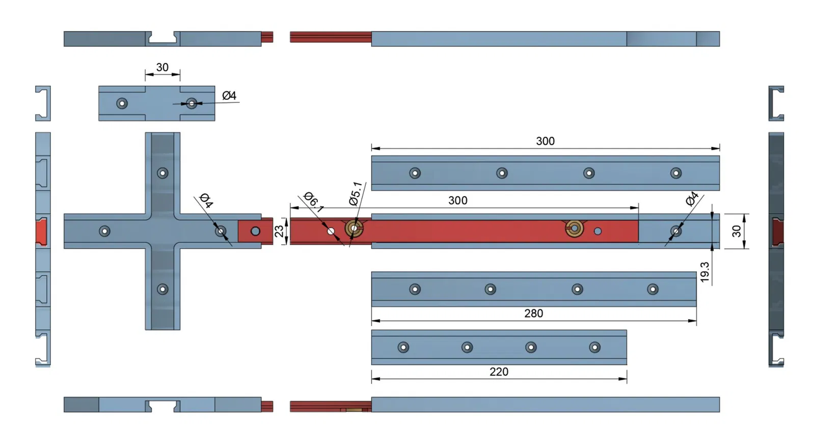 T-track rail 280 mm, lỗ 5mm và 6mm. [0.76€ 43gr, 13,41m 20% 4h50mn ] 20% 4 wall lines