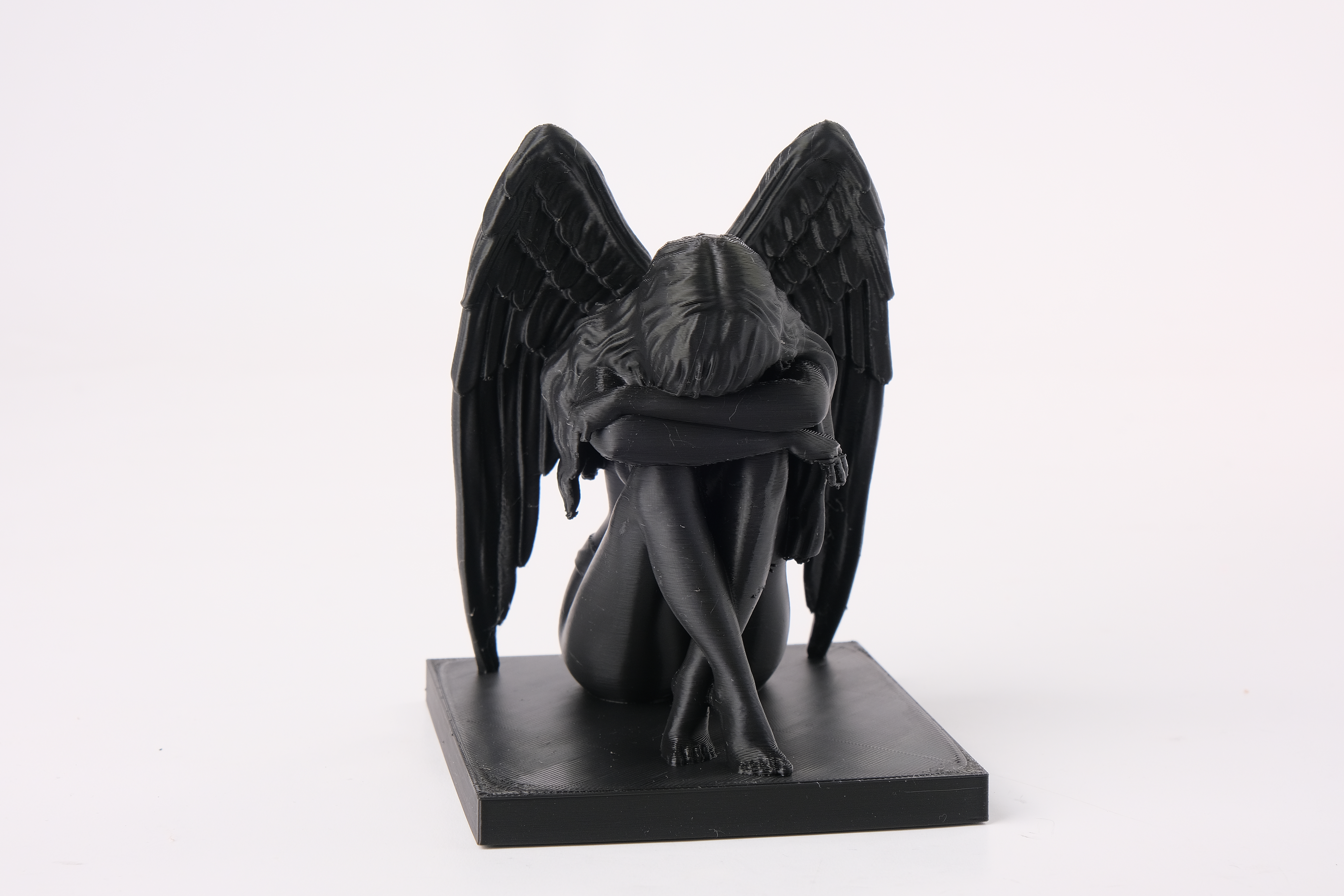 In bằng nhựa hoàn thiện matte, bề mặt mịn với chút vân nhẹ giúp làm nổi bật đôi cánh, tư thế cơ thể và tổng thể hình khối. Phần đế gọn giúp dễ đặt trên kệ, bàn làm việc, tủ đầu giường, hoặc trong các không gian nội thất thiên về nghệ thuật.