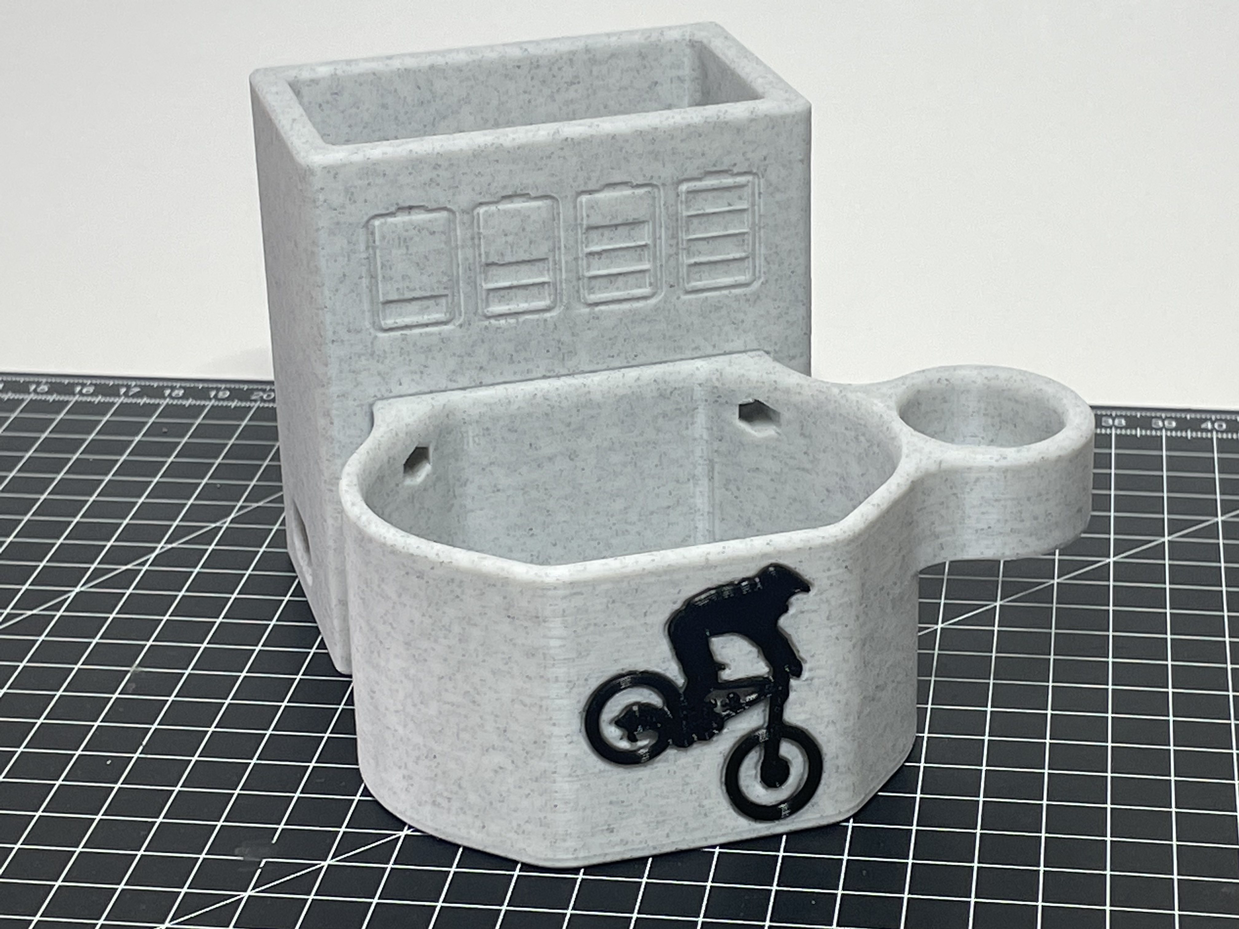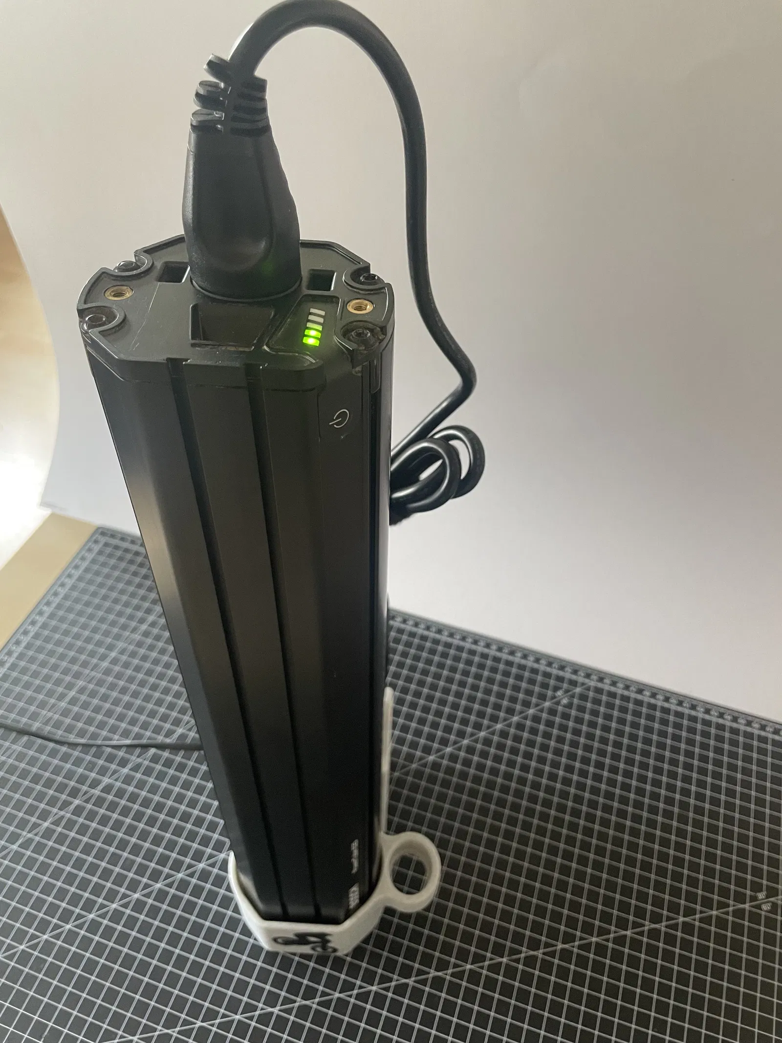 Với giá đỡ để bàn này, bạn có thể đặt bộ sạc (lưu ý đúng phiên bản 2A hoặc 4A!!!) và pin gọn trong không gian nhỏ nhất. Phần dây cáp dư có thể cất gọn bên trong thân. Mức sạc của pin luôn có thể quan sát được bất cứ lúc nào.