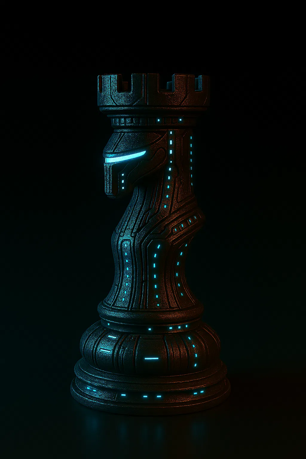 Nó được rèn từ những thuật toán phòng thủ cuối cùng của kỷ nguyên cũ. Con Xe (Rook) phát ra các làn sóng bảo vệ dao động, phản xạ đòn tấn công và ổn định luồng dữ liệu. Các battlements của nó là anten, còn tường thành thì được tạo nên từ code.