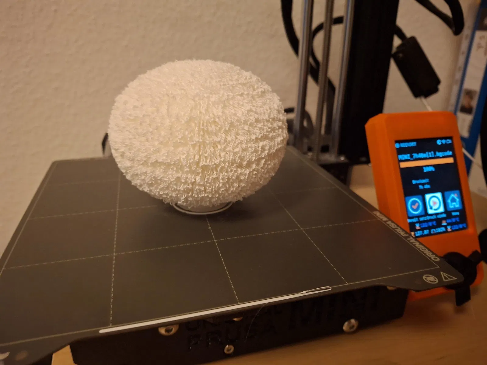 Khi thay đổi tốc độ in và tốc độ quạt, bạn sẽ ra hiệu ứng khác nhau: perimeter chậm và quạt mạnh sẽ cho cành thẳng. Perimeter nhanh và quạt yếu sẽ tạo cành xoăn.