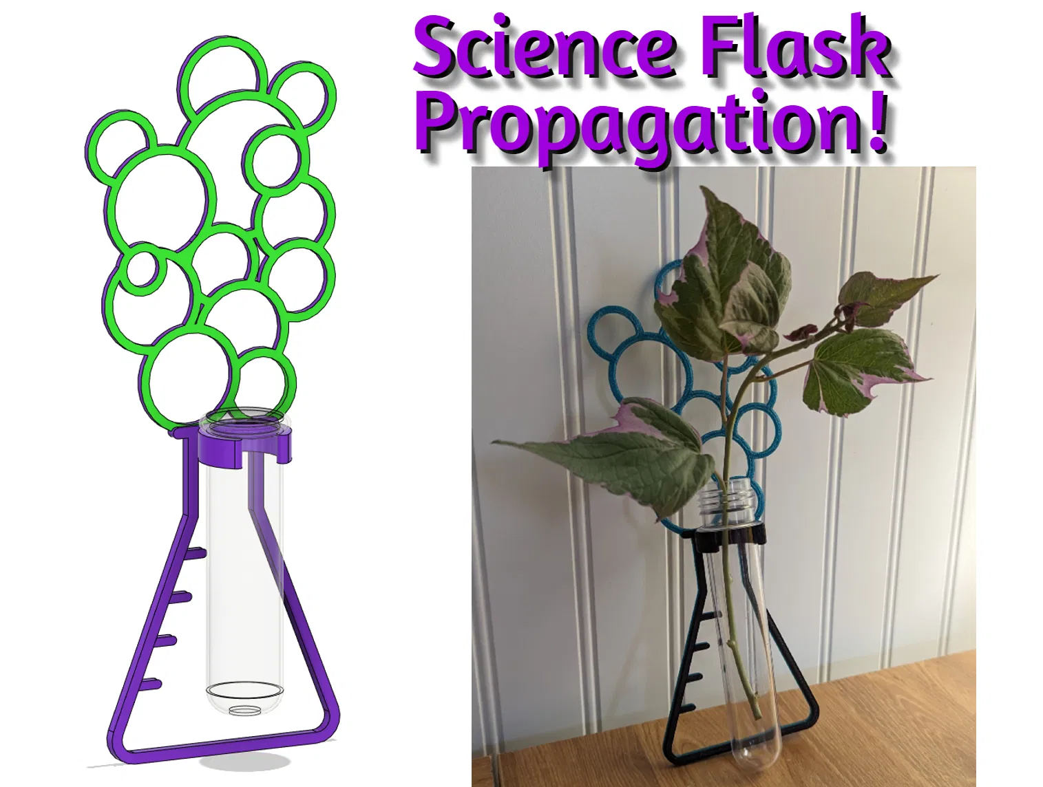Tôi đã thiết kế người giữ ống nhân giống thực vật này trông giống như một chiếc bình khoa học tràn đầy bong bóng! Các bong bóng cũng hoạt động như một tấm lưới để hỗ trợ nhà máy mới. Tôi đã thiết kế nó để sử dụng lọ đường kính 1 inch, nhưng sự phù hợp rất chặt chẽ để bạn có thể thoát khỏi các ống nhỏ hơn. Chỉ cần treo nó từ một trong những bong bóng trước cửa sổ và bạn sẽ trồng cây trong thời gian không! Không cần thiết bè/vành Không cần thiết váy Không (có thể đi bên ngoài khu vực in) ghi chú in chiếm một giường MK3 đầy đủ. Lớp đầu tiên tốt quan trọng!