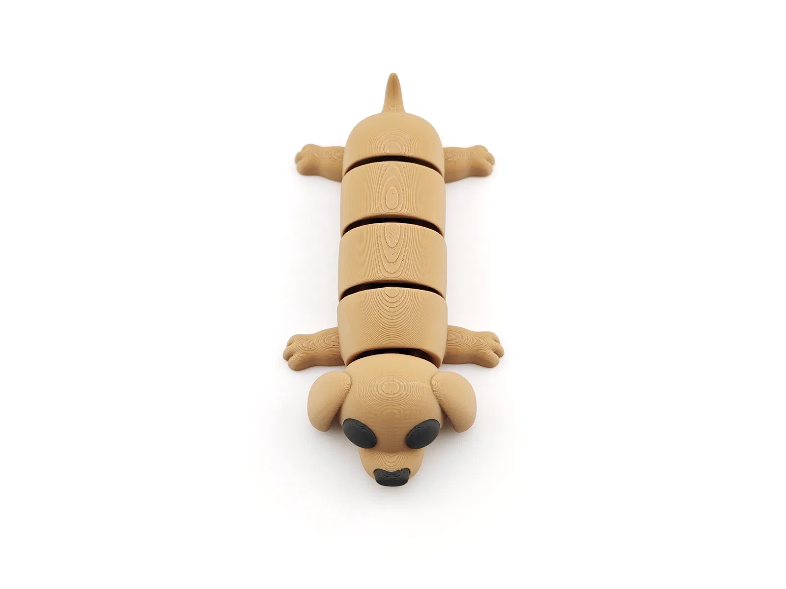 Model Weiner Dog (chó lạp xưởng) dạng articulated, dễ in và vui tay. Có sẵn 3MF multicolor cho AMS, STL dễ paint đa màu, bản móc khóa và file split-color cho máy in đơn sắc.