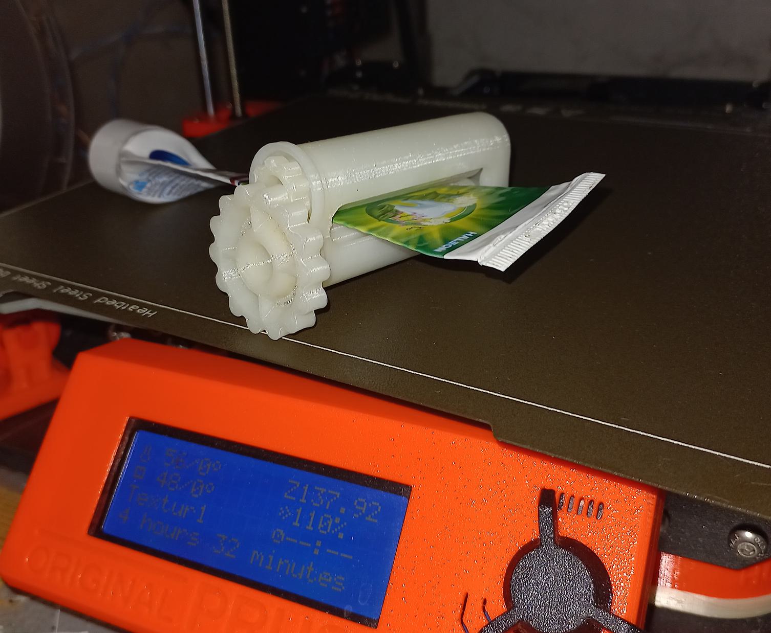 Mẫu này là dụng cụ bóp tuýp kem đánh răng, giúp vắt sạch kem còn lại trong ống như bản gốc. Tác giả đã in với brim và không cần supports, phù hợp để in nhanh và dễ dùng hằng ngày.