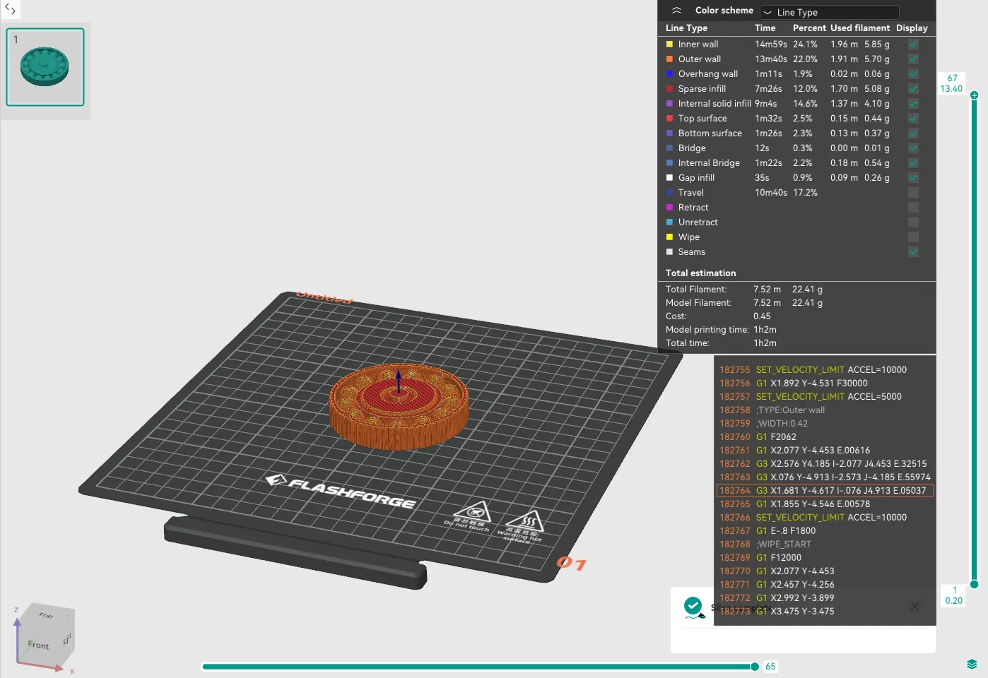 • Infill: 20–30% (khuyên dùng Gyroid để cân bằng trọng lượng bên trong đẹp).