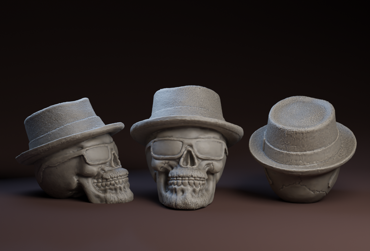 Mẫu 3D “Heisenberg Skull : Breaking Bad” với phần scan đã được sửa lỗi và bổ sung Displacement để bề mặt/chi tiết rõ hơn, phù hợp cho in 3D và hoàn thiện sau in.