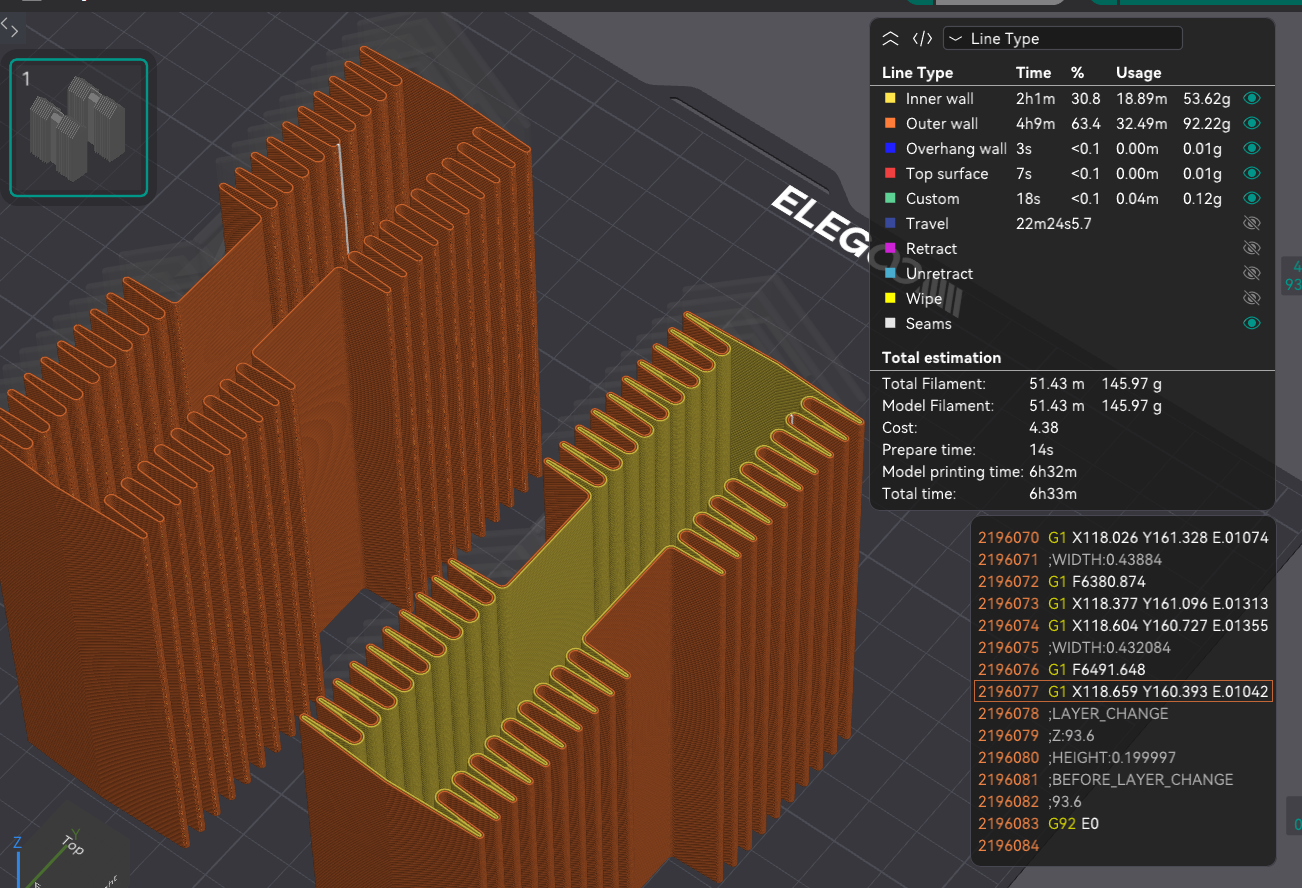 Profile 3mf của mình có một mẫu bellow đã được “shelled out” và một bản solid không có bottom layer và không có infill, để bạn tự tăng walls theo ý.