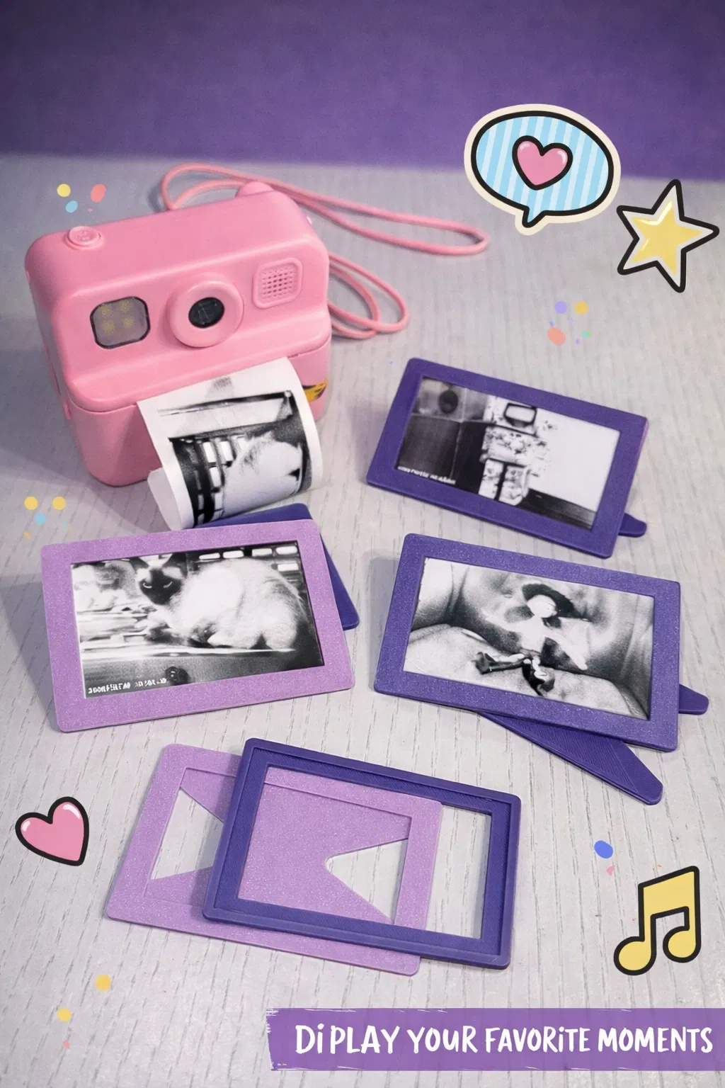 Khung này được thiết kế theo ảnh in nhiệt (thermal prints) cỡ nhỏ thường gặp ở các máy ảnh instant cho trẻ em.