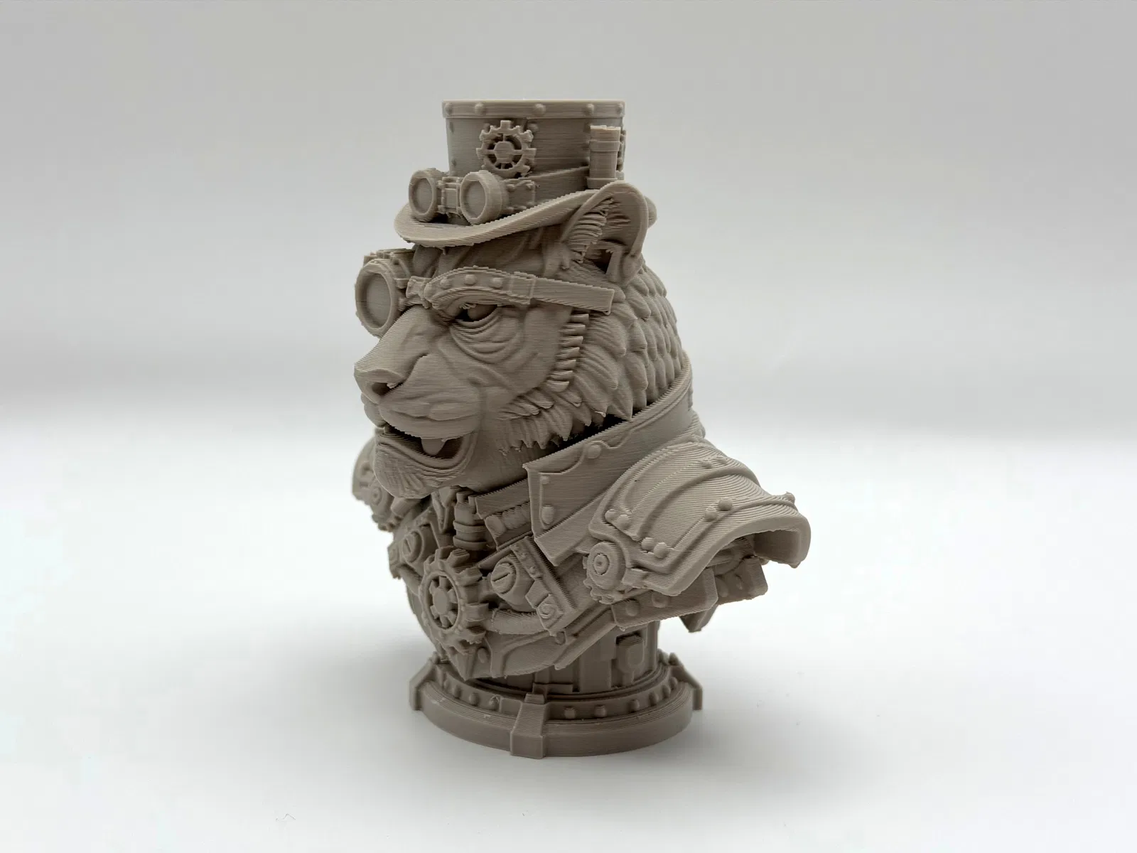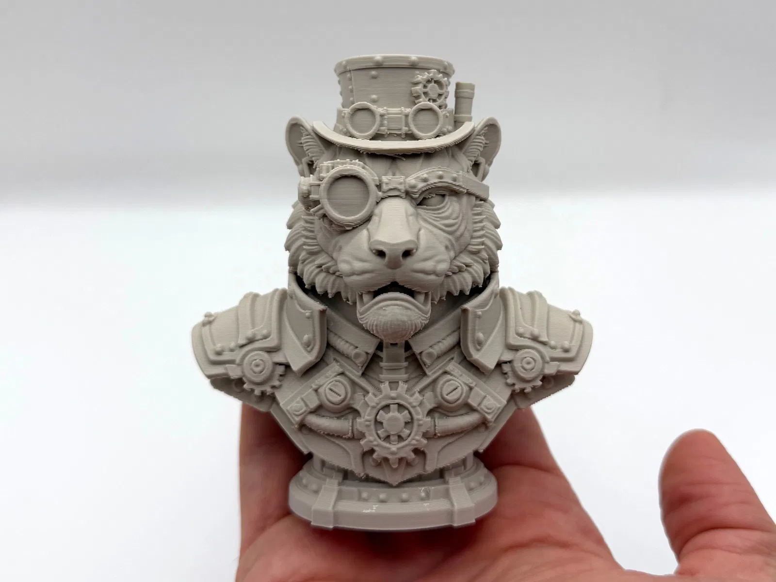 Tiger Steampunk Bust – mẫu bust hổ steampunk cực kỳ chi tiết, kết hợp vẻ uy nghi kiểu Victorian với chất cơ khí công nghiệp. In dễ vì cần ít supports; dùng organic supports và chỉnh Z-top height để tháo nhanh, sạch.