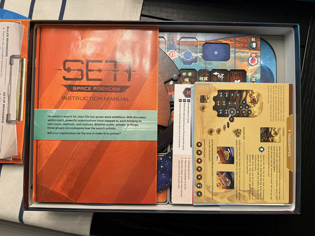 Đây là bộ organizer cho board game SETI của Czech Games Edition, bao gồm luôn bản mở rộng Space Agencies. Bạn sẽ cần in các phần sau: