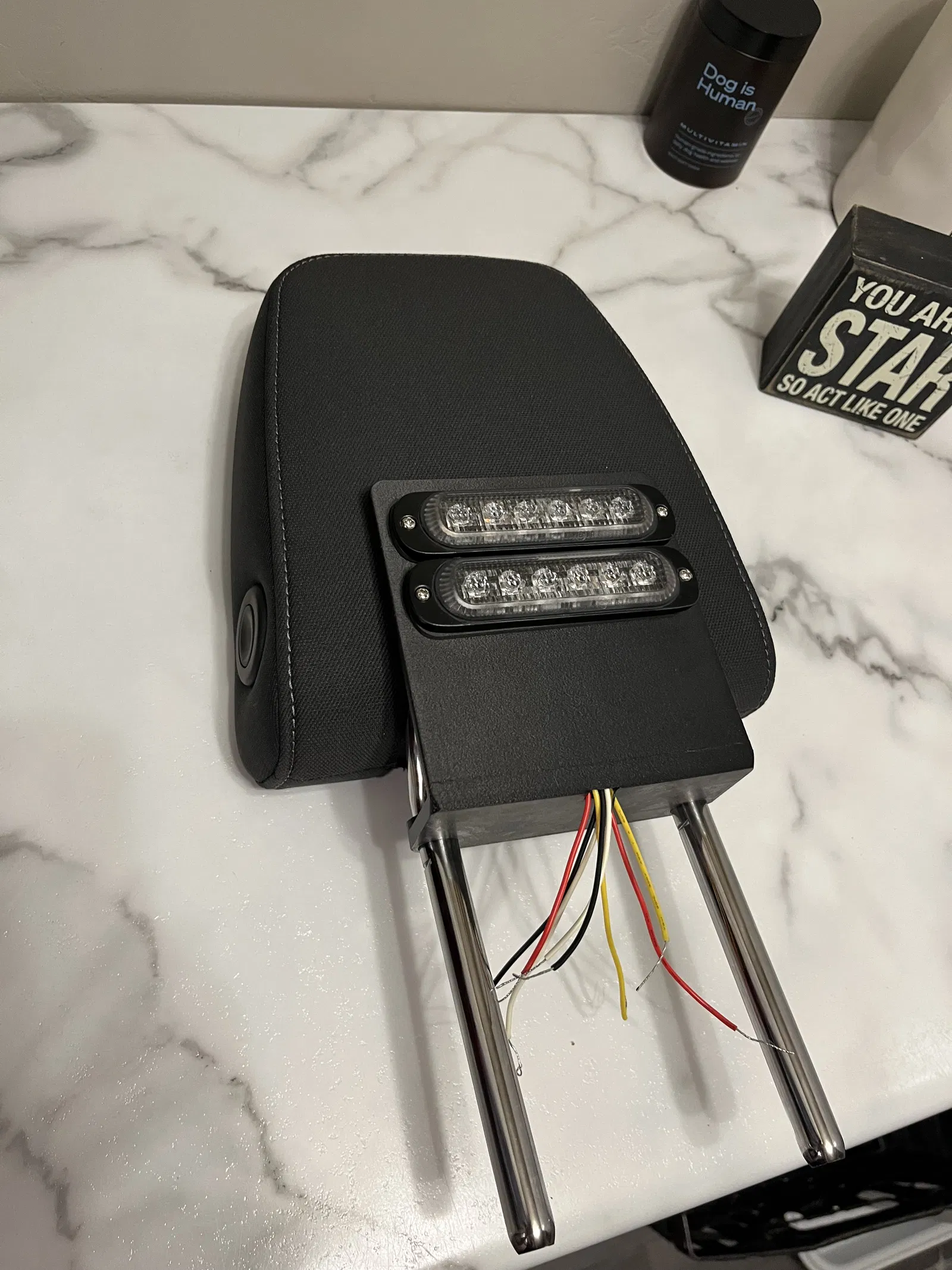 Đây là một bộ sưu tập các chi tiết mình tự dựng (chỉ dùng Tinkercad) để gắn đèn khẩn cấp phía sau tựa đầu ở hàng ghế sau của Sierra crew cab đời 2019+. Mình đoán bản double cab dùng chung kích thước, nhưng chưa xác nhận.