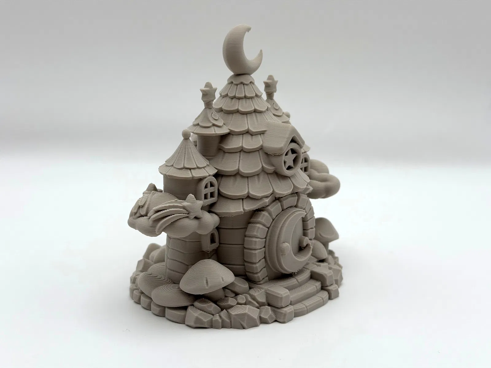 Moongate Cottage là mẫu 3D in được mang vibe cổ tích, hợp cho fan fantasy và người sưu tầm miniature. Cần ít supports; dùng organic-style supports dễ gỡ sạch. Có thể chỉnh Z-top height để tháo supports nhẹ nhàng hơn.