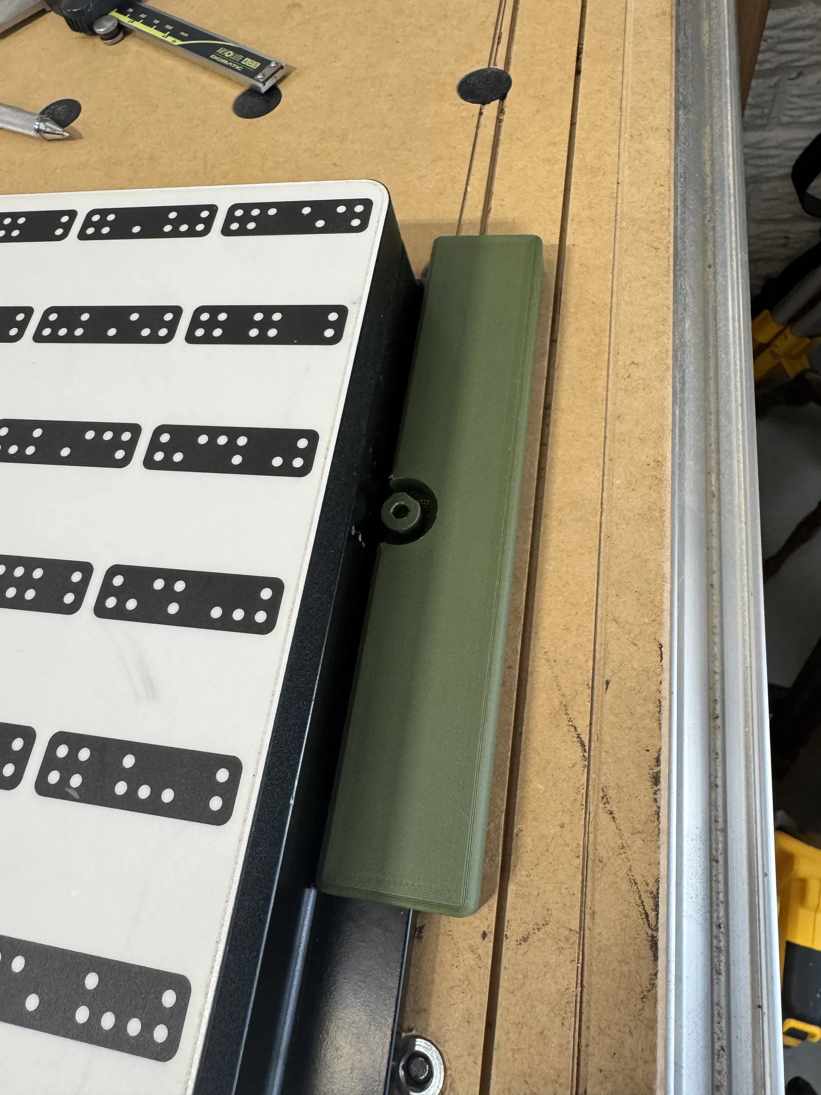 Mình dùng Shaper Station cho khoảng 90% các dự án Shaper Origin. Mấy cái kẹp để giữ nó xuống MFT của mình kiểu gì cũng hay vướng dây điện/ống hút/tay mình, v.v. (Mình gắn MFT lên một cái bàn di động nên phía dưới không có nhiều khoảng trống để đi dây/ống từ dưới lên.) Nên mình quyết định nghĩ cách kẹp sao cho “flush” (phẳng mặt). Cuối cùng mình chốt phương án này. Cái clamp có bộ rãnh được làm theo đúng biên dạng (chừa hở 0,5mm) để ôm vừa các chân của station. Trước đó mình đã làm mấy “star dog” có ren (M8–1.25) đi lên từ dưới để giữ các vacuum pad, nên mình tận dụng lại luôn. Mình in luôn phần bolt để có lỗ lục giác 4mm ở trên, vừa với dụng cụ hex của Shaper. Độ giữ rất chắc, mình ưng lắm.