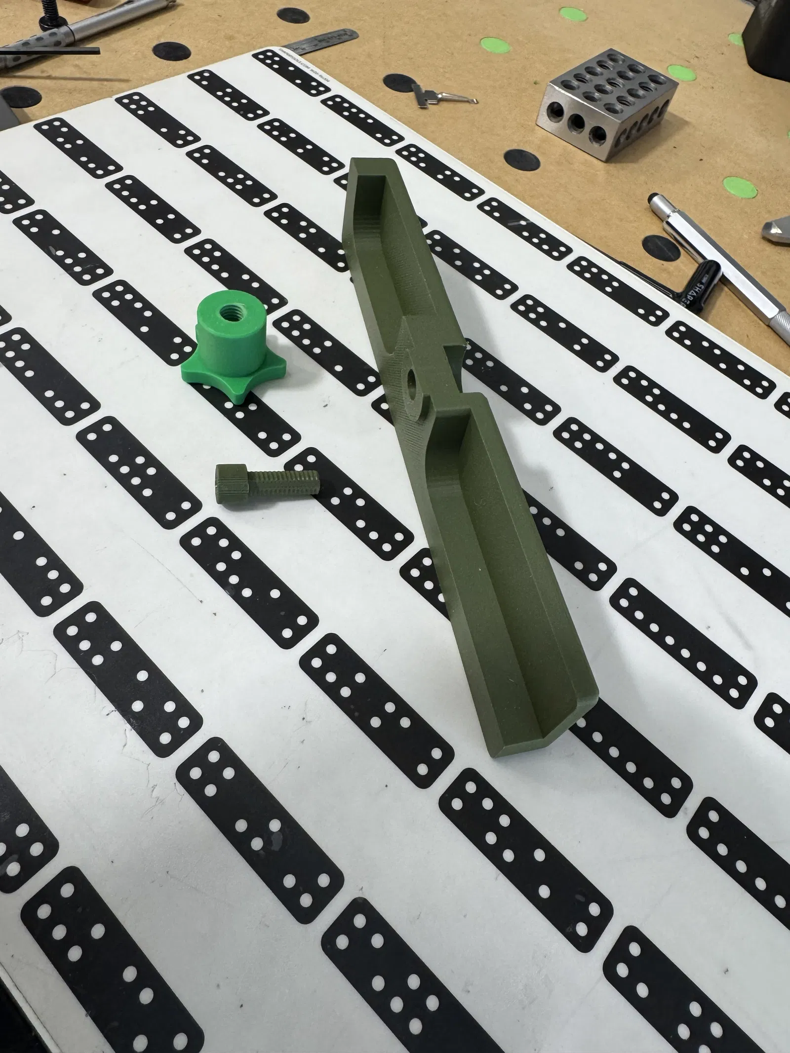 Mình in bằng PLA và thấy là nếu siết bolt bằng dụng cụ hex đi kèm Shaper Origin thì sau một thời gian sẽ bị tuôn lỗ. Nên mình chỉ dùng cây hex để giữ cho bolt đứng yên, rồi dùng phần “star” trên dog để siết chặt hết lại. Chạy ngon lành.