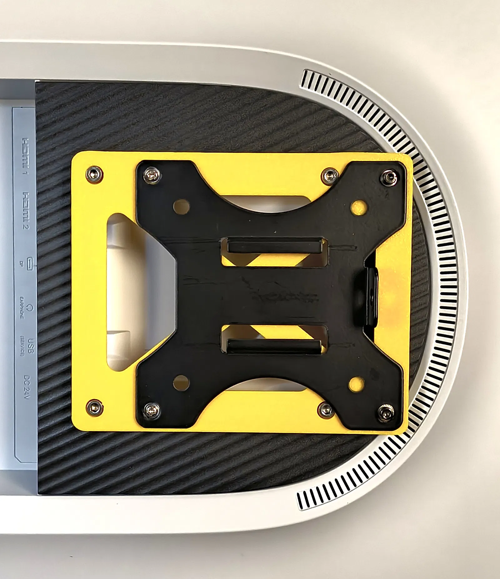 Cũng hơi bất ngờ nếu có ai thật sự cần món này, nhưng nếu bạn cần thì đây là adapter VESA 100x100 cho phép dịch chuyển màn hình (lên/xuống/trái/phải) 1" (25mm). Các lỗ nhỏ hơn dùng cho inserts, nơi mà ngàm/gá gắn màn hình sẽ bắt vào. Các lỗ khoét âm (recessed) là để bắt vít vào các lỗ VESA trên màn hình. Các standoffs có thể rút ngắn trong slicer. Standoffs được thiết kế lệch tâm vì một số màn hình không có nhiều khoảng hở quanh lỗ VESA.