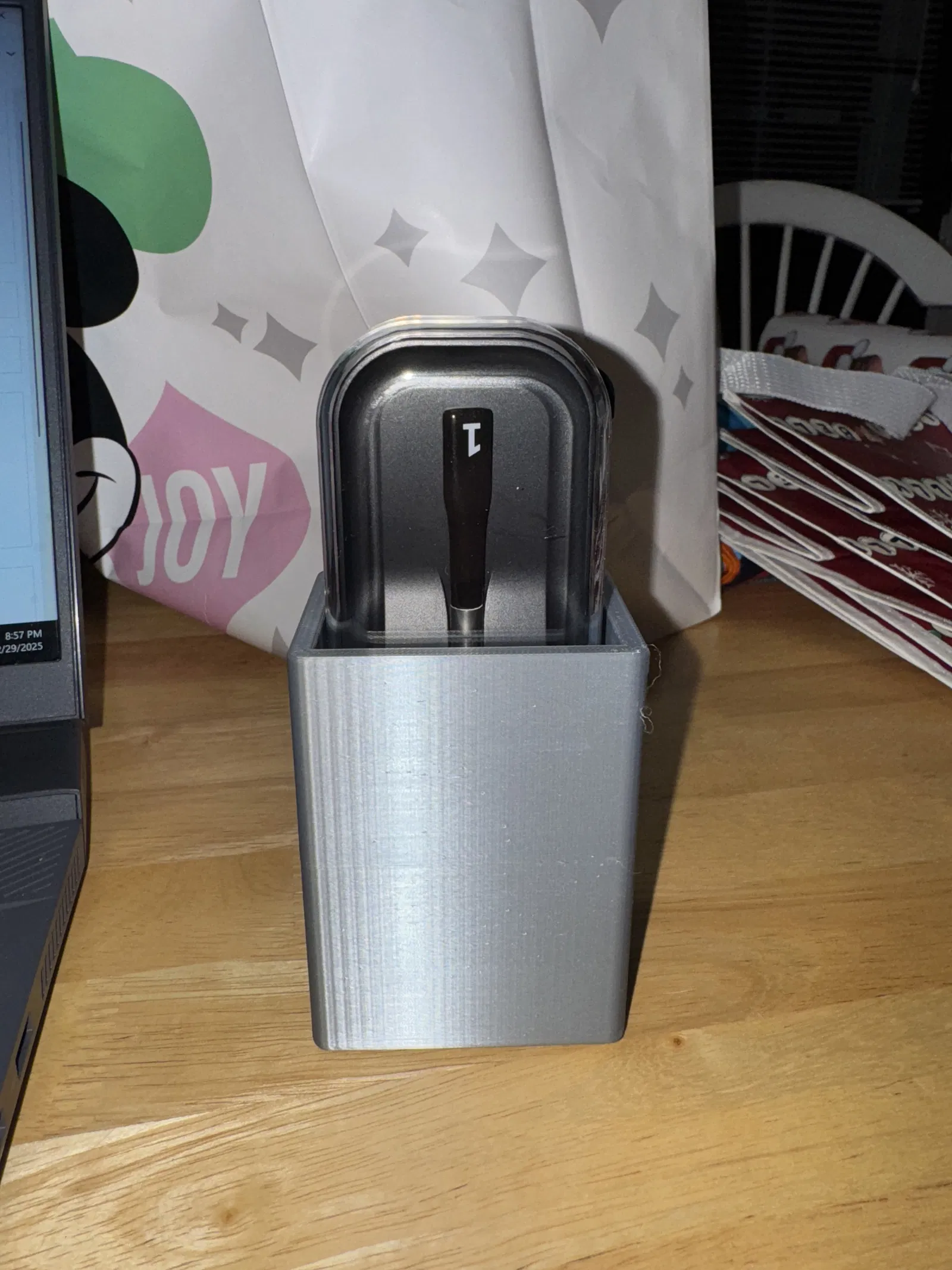 Đây là một cái holder đơn giản gắn lên tủ lạnh để giữ nhiệt kế không dây Chef IQ. Phần đáy có một hốc (pocket) giúp tránh việc nút bị bấm nếu lỡ cắm ngược. Cũng có thể dùng để giữ đồ khác nữa!