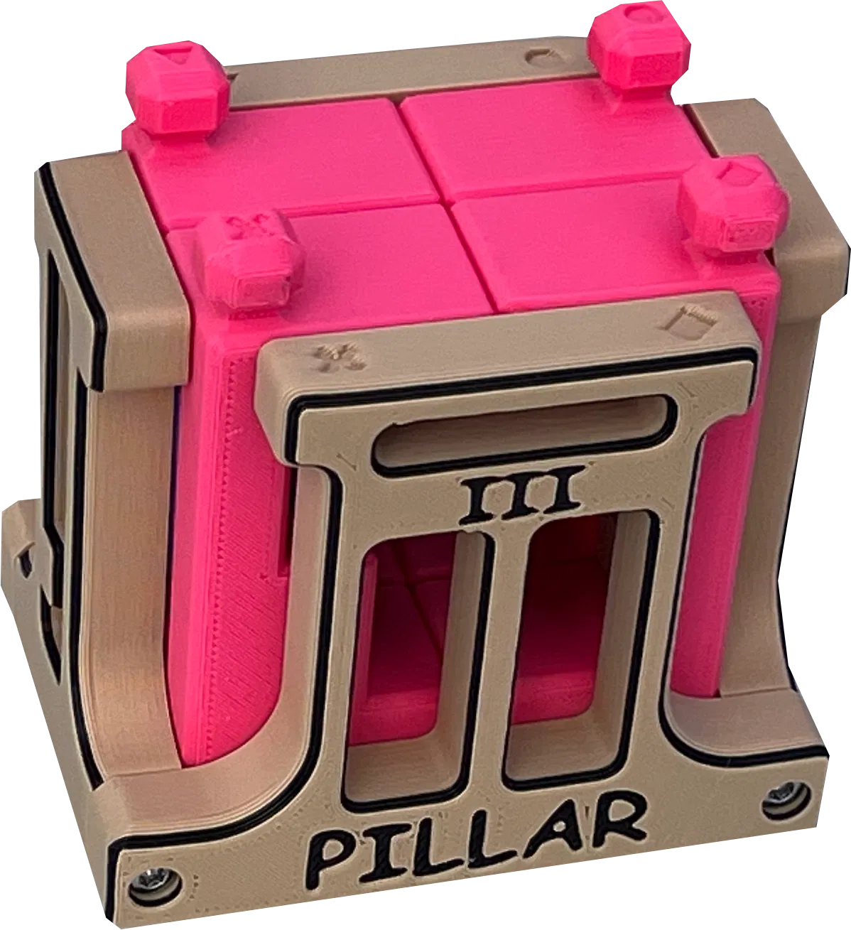 Bộ 3 puzzle này được Alfons Eyckmans tạo ra và anh ấy hào phóng cho phép đăng tải ở đây. Mình đã dựng lại (remodel) để phù hợp cho 3D printing và hầu như in được dễ dàng mà không cần supports (ngoại trừ mảnh “o” của Pillar 1).