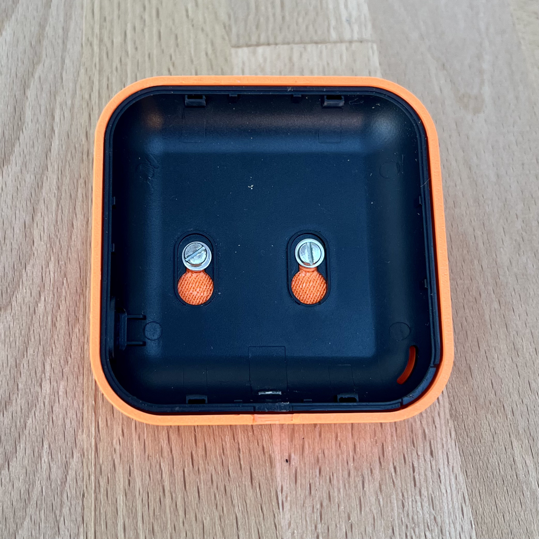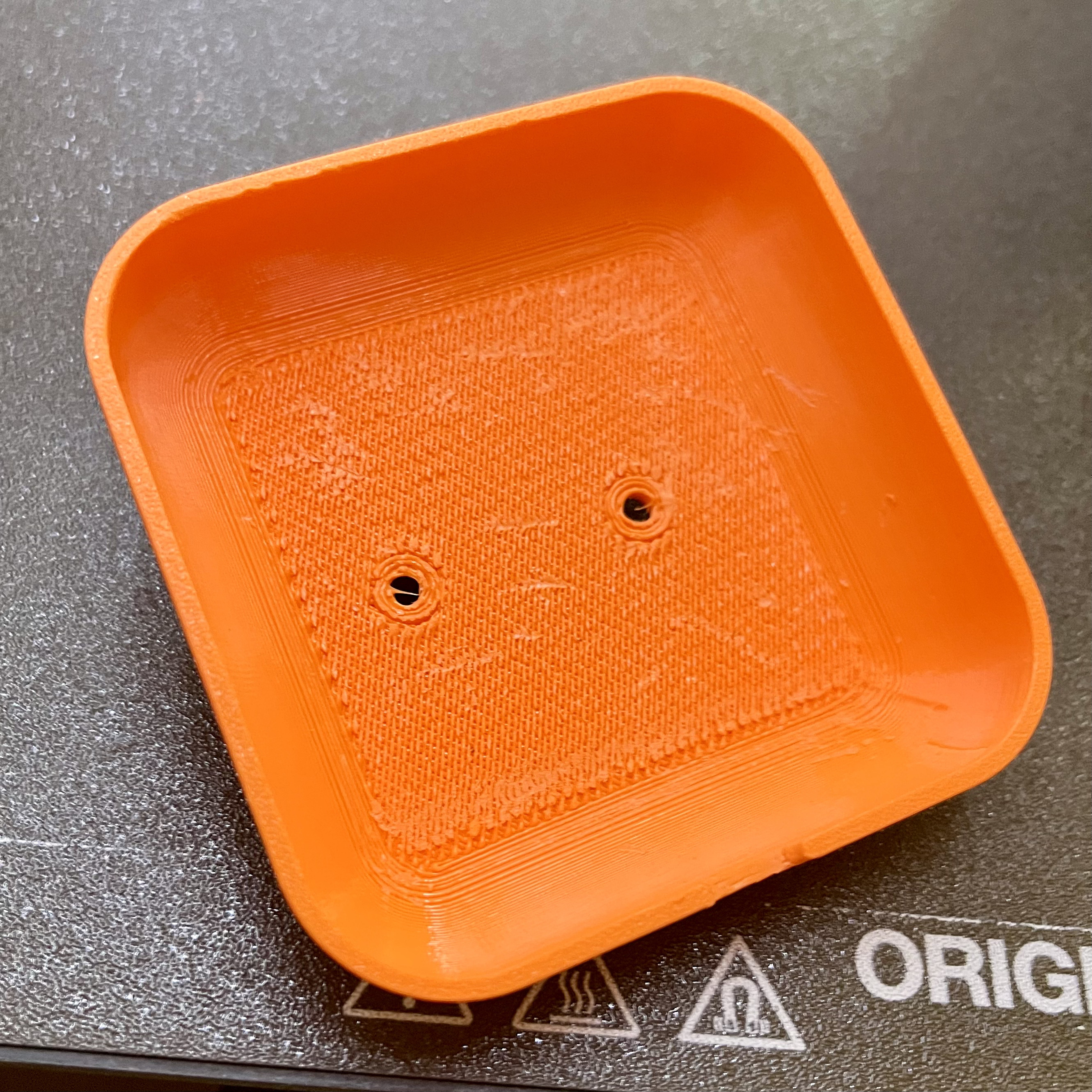 PETG, có dùng supports ở giữa, để mặt trước úp xuống mặt bàn in (print bed)