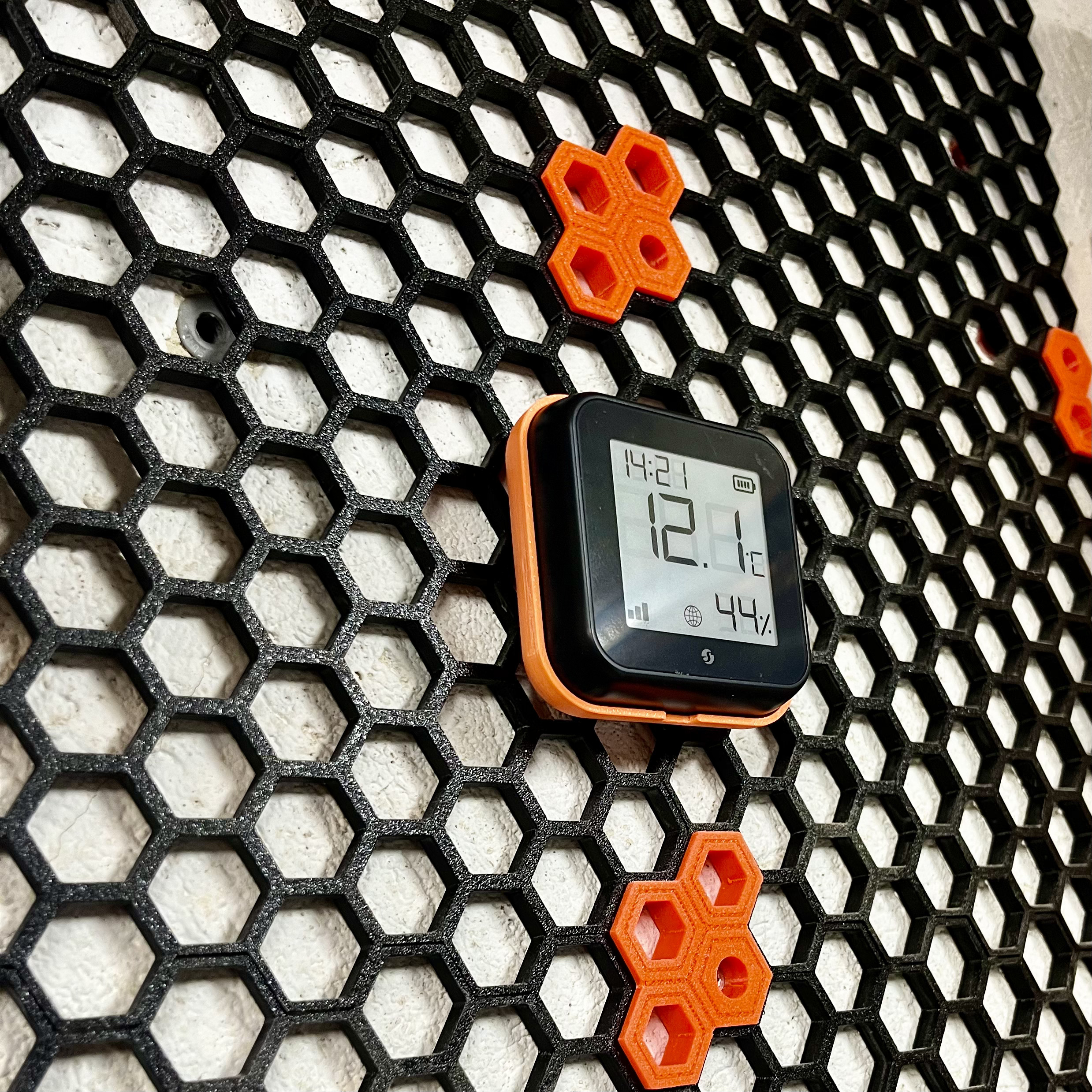 Giá đỡ cho một Shelly Plus H&T gắn lên Honeycomb storage wall.