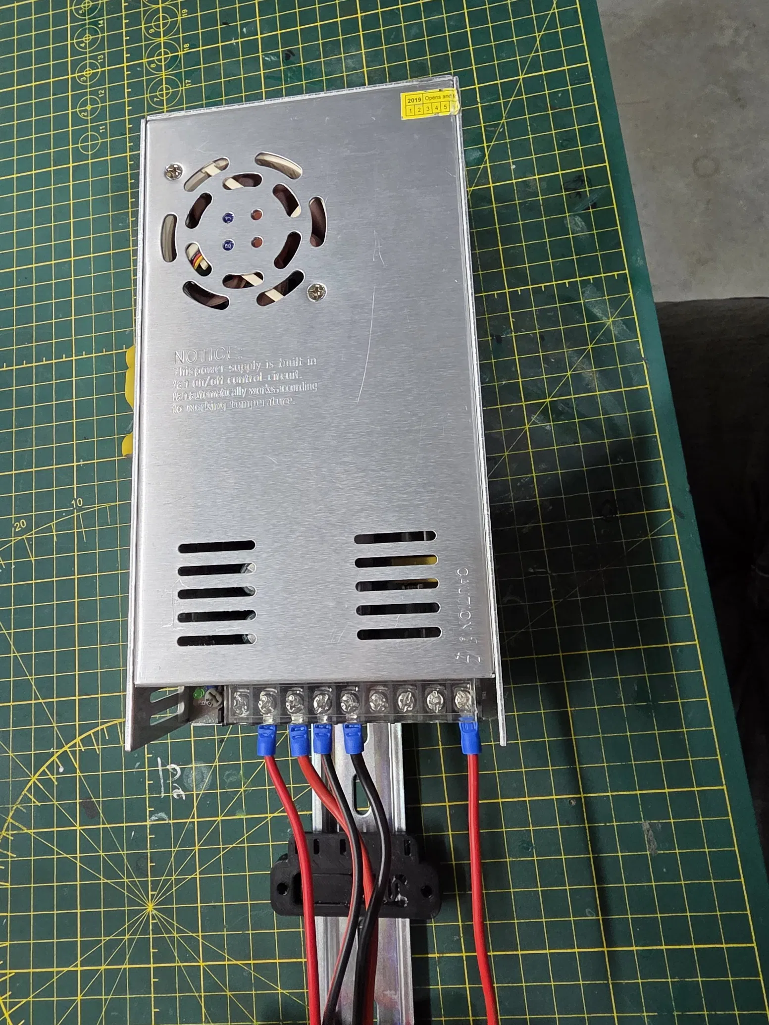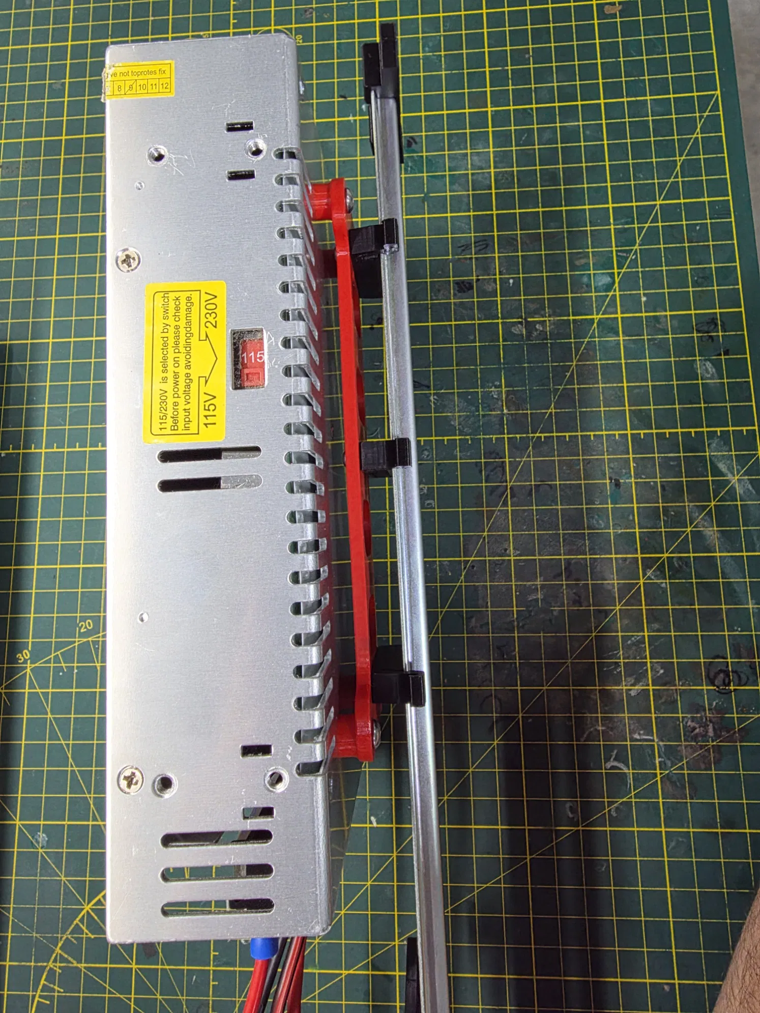 Pát/giá đỡ bộ nguồn ChengLiang P500W24V gắn DIN rail, làm nhanh cho Mercury One.1 với khoang điện tử custom. Bắt vào DIN mounts in sẵn, hơi khít trên rail nhưng dùng ổn.