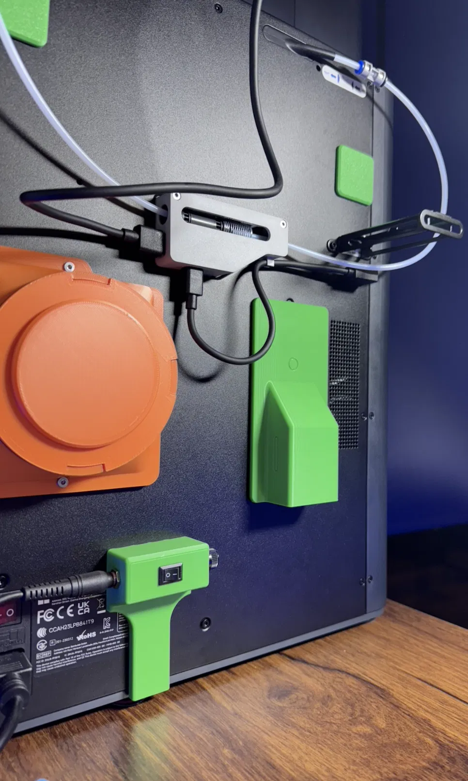Thiết kế ổ cắm/hộp nguồn gắn ngoài giúp cấp điện an toàn cho hệ lọc Bento Box từ bên ngoài máy in, không cần khoan cắt. Gắn bằng nam châm neodymium cho Bambu Lab P1S/X1C, có cầu chì inline và công tắc bật/tắt.