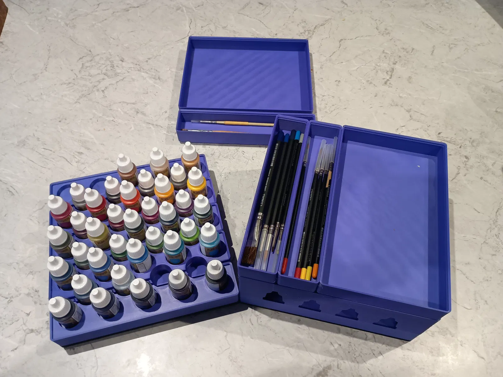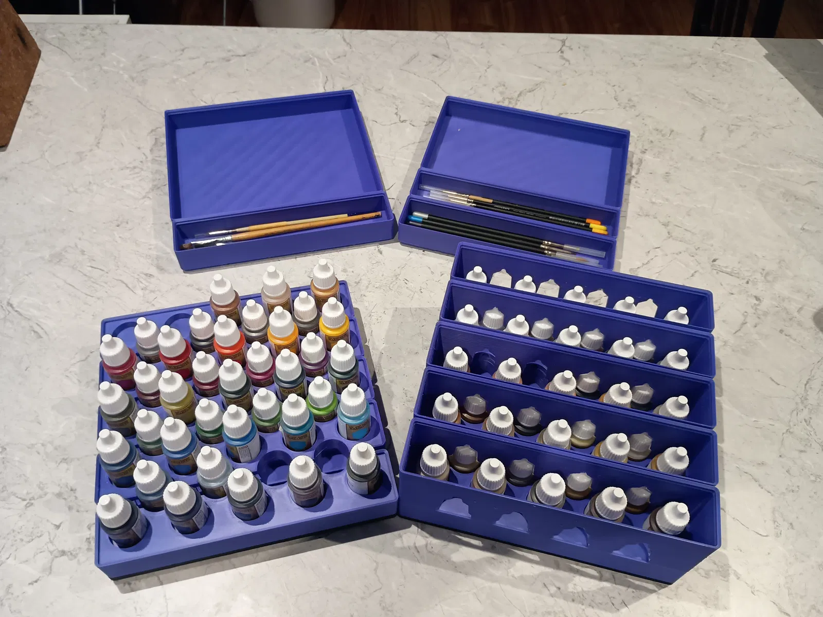 Để giải quyết, mình có thêm một số khay cao 1 đơn vị Gridfinity Z, thường mình đặt dưới các phần “gridfinity-paint-holder” khi xếp kiểu flat.
