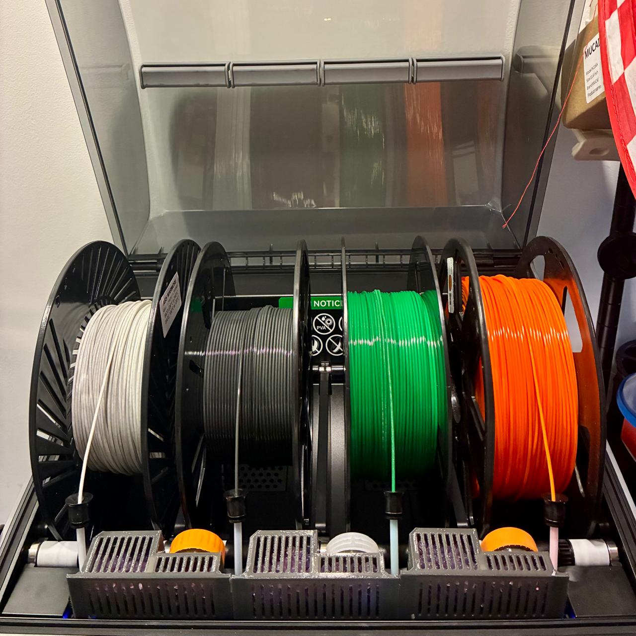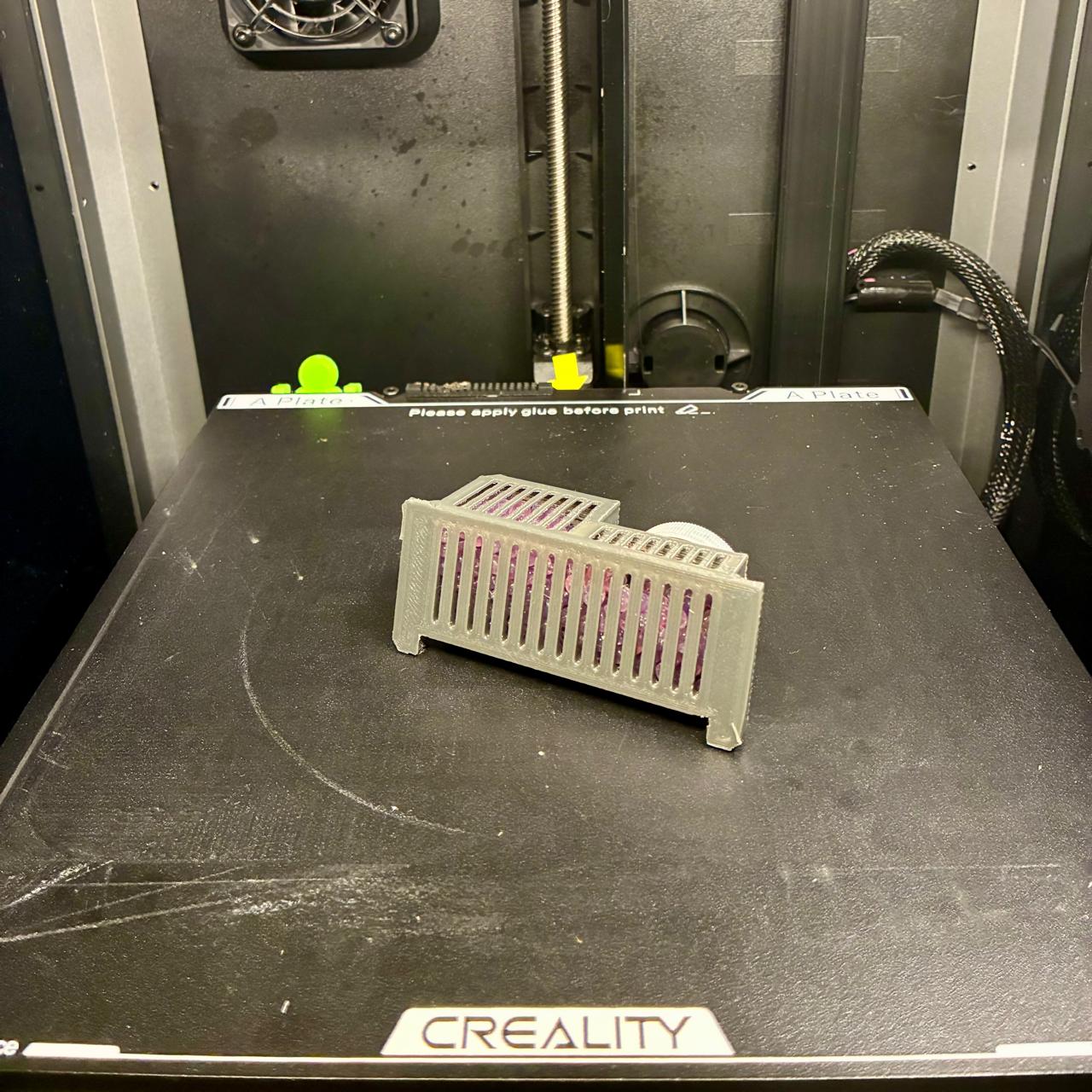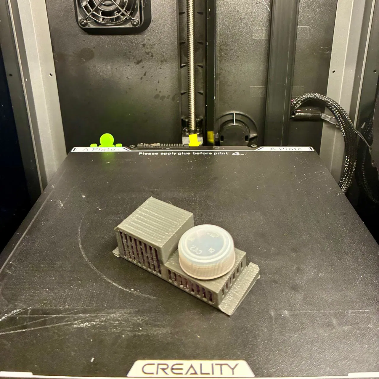 Mình chỉnh sửa thiết kế của Kamil (https://www.crealitycloud.com/model-detail/silica-gel-basket-for-cfs-easy-to-print) để dùng nắp chai PET, chắc chắn hơn nhiều.