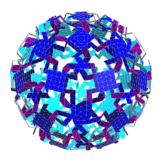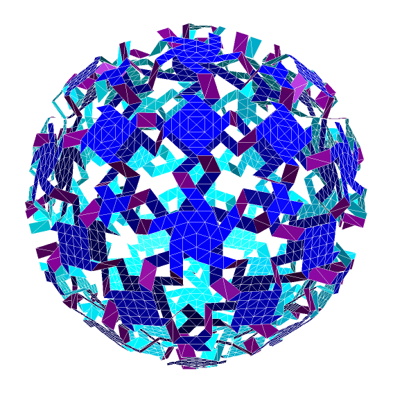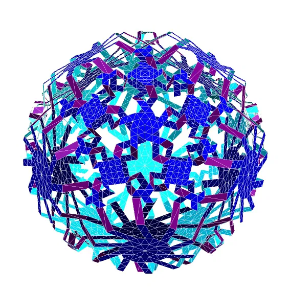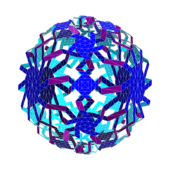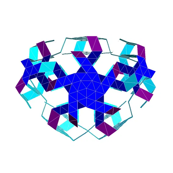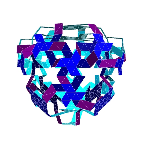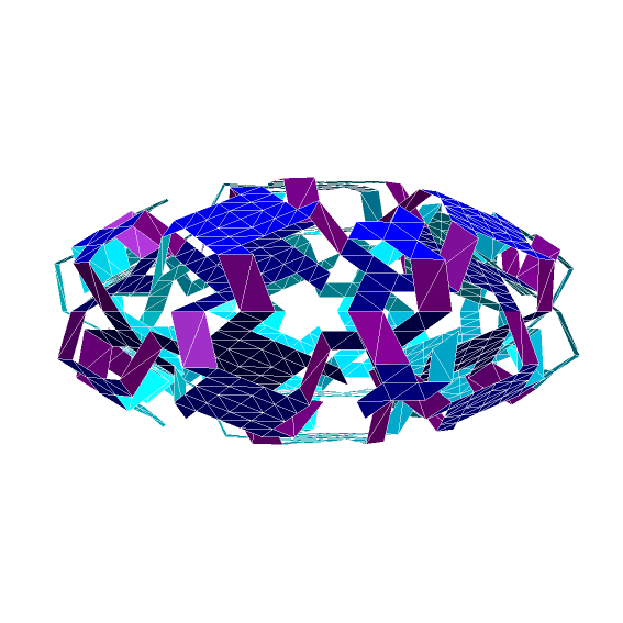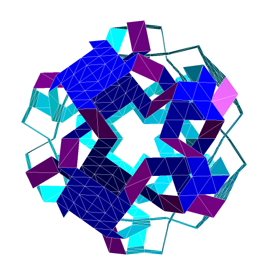 Những polyknots này, cũng như tất cả polyknots khác, là các “knot” có đối xứng đa diện (polyhedral symmetries) hoặc trong trường hợp này là bất đối xứng (asymmetries). Để tính crossing number cho các nút 3D này, lấy số đỉnh của khối đa diện gốc nhân với cấu hình đỉnh (vertex configuration) của nó.