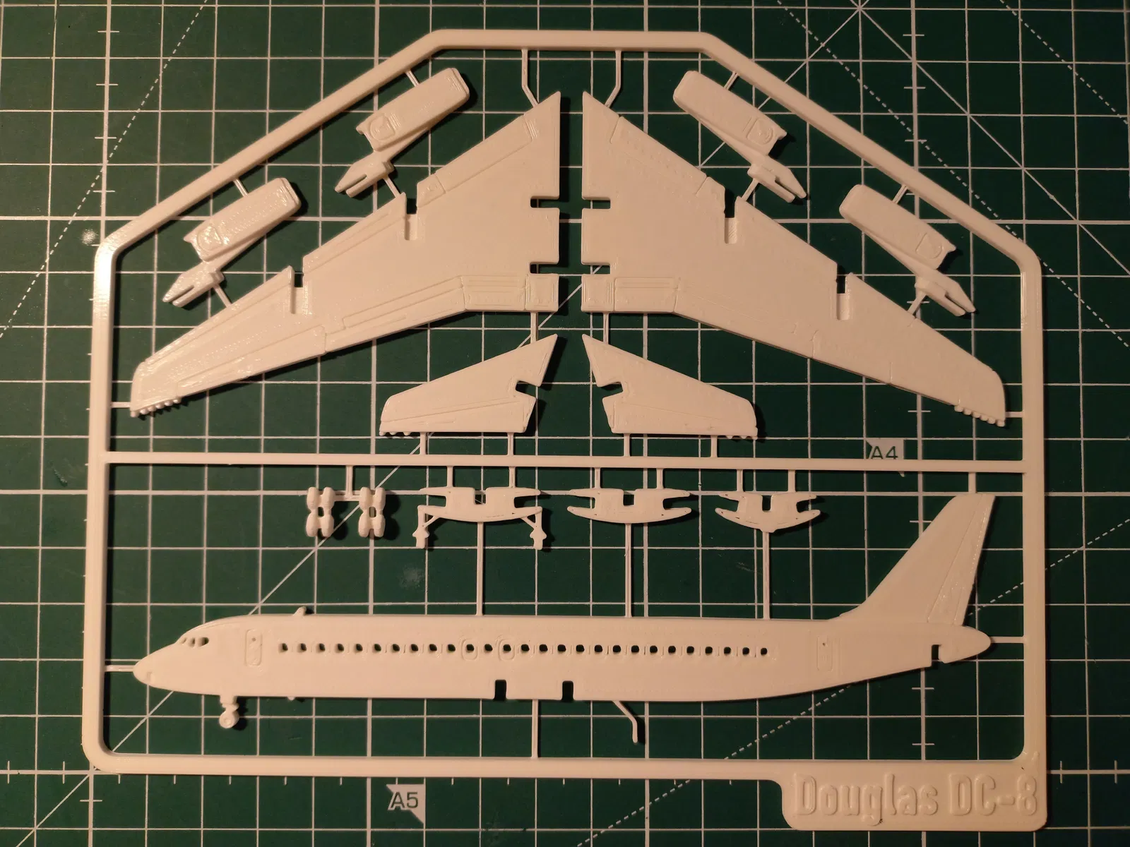 Mẫu kit card lắp ráp Douglas DC-8-62: một trong những máy bay phản lực chở khách thành công thời kỳ đầu. Có bản có/không landing gear, tùy chọn mở cargo bay, và in kèm hoặc không kèm sprue.